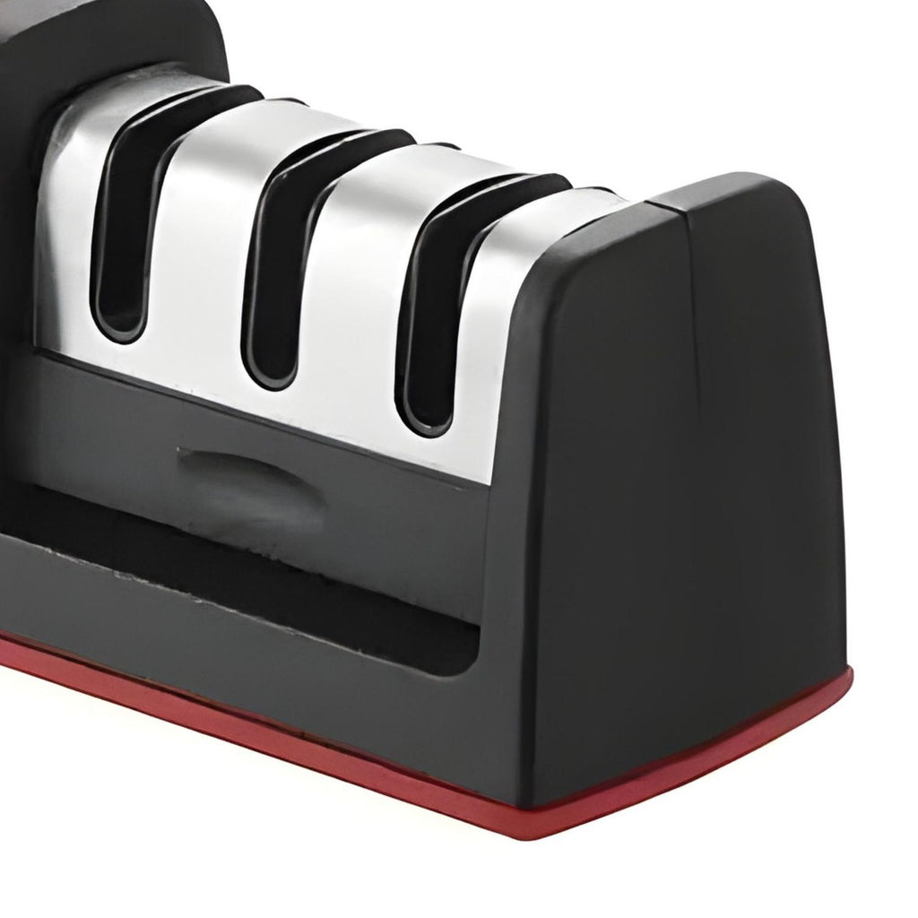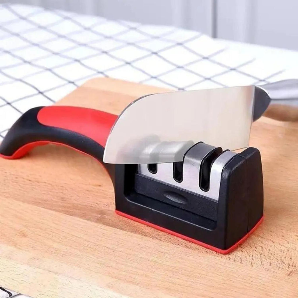 Afilador de cuchillos de 3 etapas diseñado para reparar, afilar y pulir hojas con rapidez y precisión. Su sistema combina ranuras de diamante, tungsteno y cerámica para devolverle a tus cuchillos un filo perfecto en segundos. Ideal para cuchillos de cocina, sashimi, filete de pescado y otros, ofrece resultados profesionales sin complicaciones.