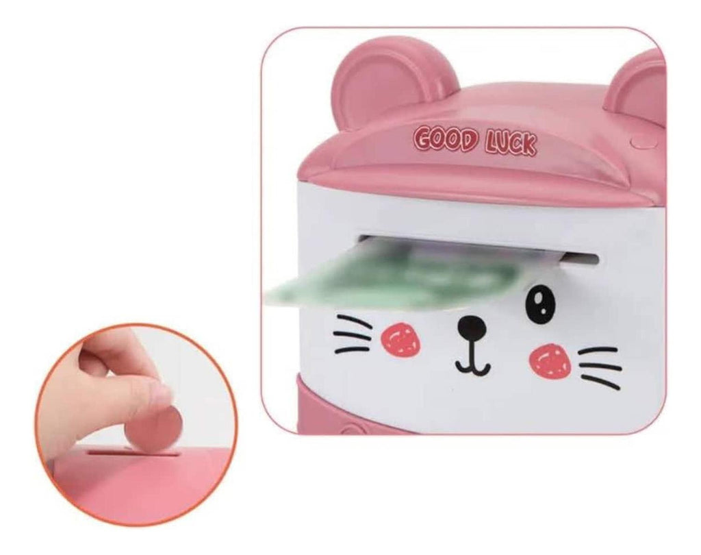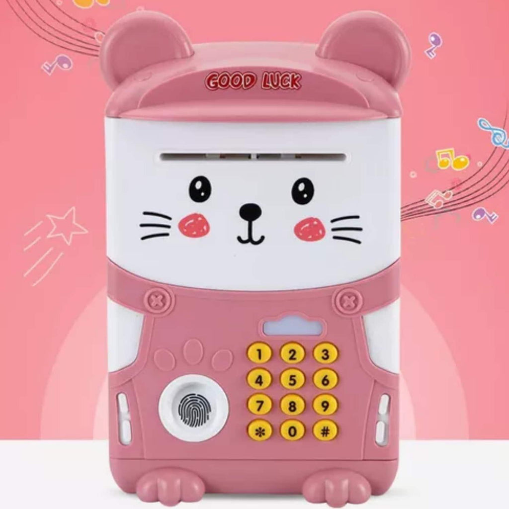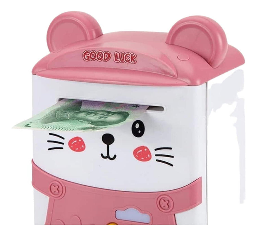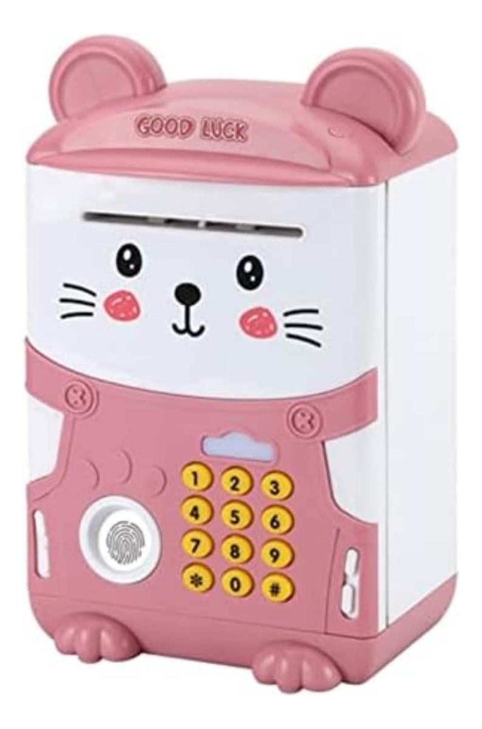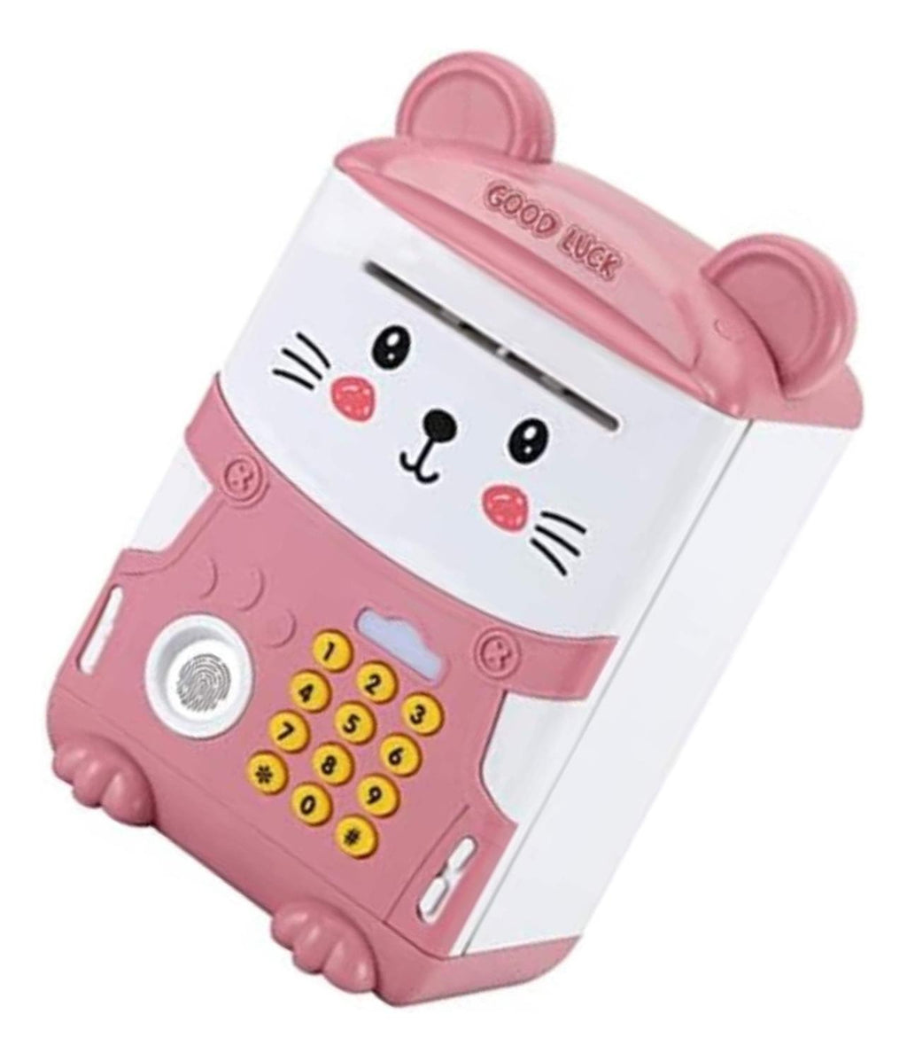 Esta alcancía automática funciona como una caja fuerte portátil y entretenida, ideal para que los niños guarden monedas, billetes y tarjetas de juegos como Pokémon o Yu-Gi-Oh. Cuenta con un código de seguridad para la apertura del cerrojo, promoviendo el valor del ahorro y la educación financiera desde temprana edad. La ranura automática para billetes funciona similar a un cajero bancario, haciendo que guardar dinero sea divertido y sencillo. Requiere 3 pilas AA (no incluidas).