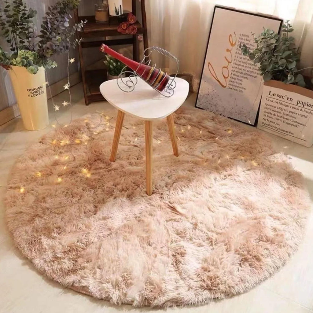 Alfombra Peluda Super Suave Redonda 1 MTS Beige Jaspeado