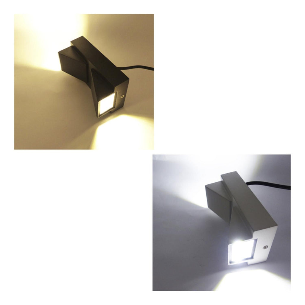 Aplique decorativo con 2 luces LED COB, fabricado en aluminio resistente y con diseño moderno para muro. Disponible en luz cálida y fría, es ideal para pasajes, caminerías, jardines o áreas exteriores, aportando un estilo elegante mientras ilumina de manera eficiente.