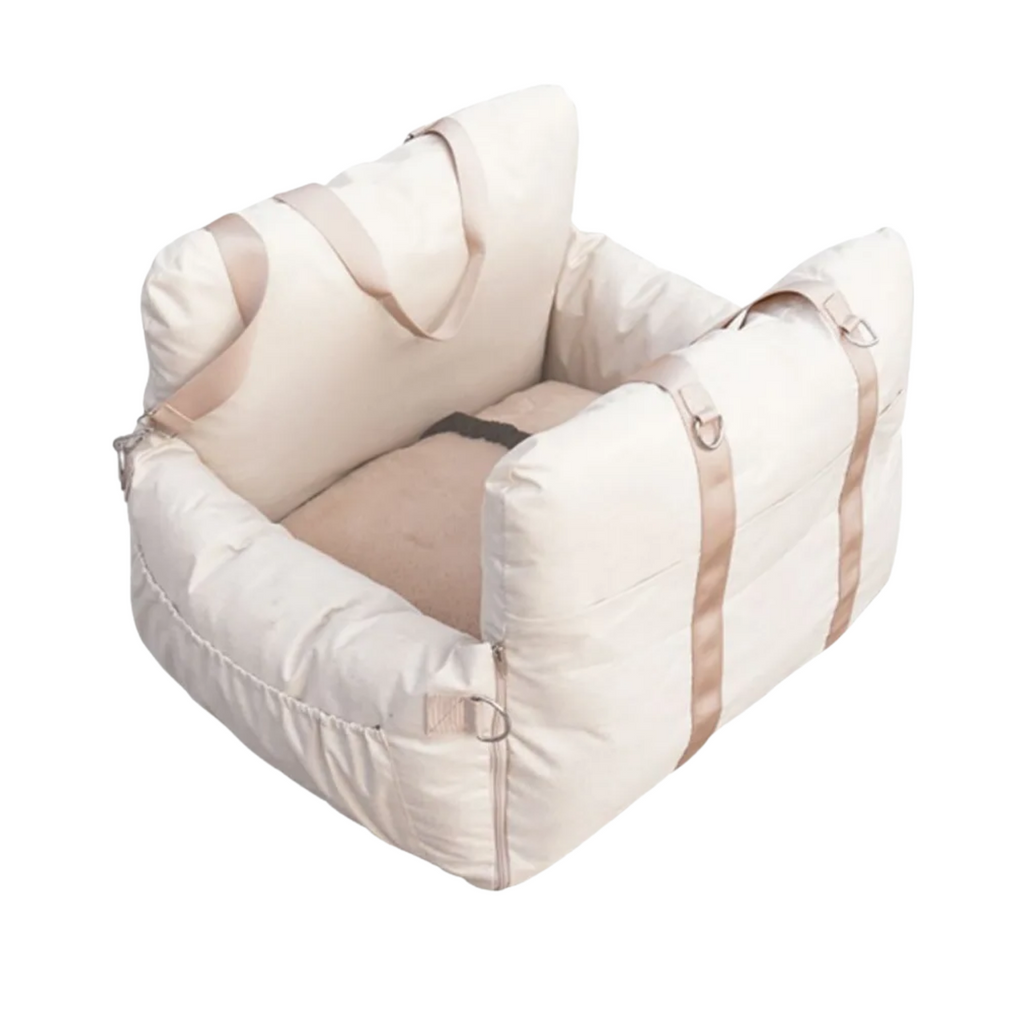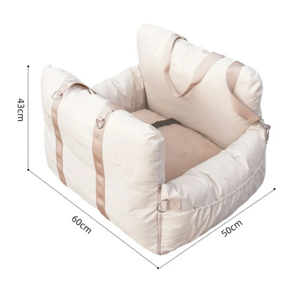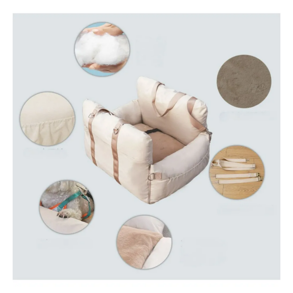 Este asiento premium para mascotas está diseñado especialmente para perros medianos de hasta 12.5 kg o para dos perros pequeños, ofreciendo un espacio cómodo y seguro durante tus viajes. Sus correas ajustables y hebilla de seguridad, compatibles con el collar de tu mascota, garantizan una sujeción firme y tranquilidad total. Además, sus cojines de seguridad estratégicamente ubicados brindan protección de 360 grados para tu compañero, cuidándolo en cada trayecto.