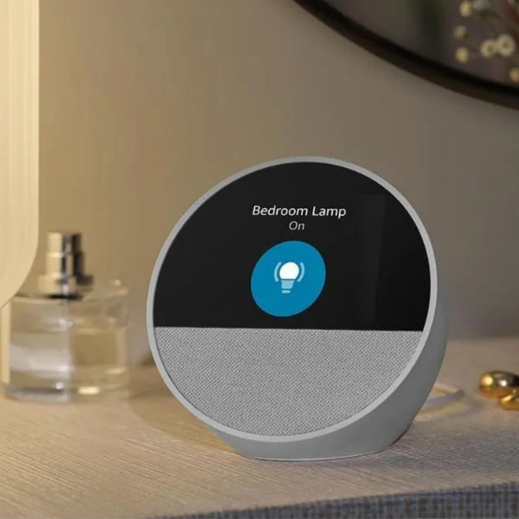 El Amazon Echo Spot es un despertador inteligente moderno con Alexa integrada, diseñado para ofrecerte comodidad, sonido vibrante y funciones personalizables en tu día a día. Su pantalla circular te muestra la hora, el clima, recordatorios y títulos de canciones de un vistazo, mientras que su diseño compacto y estilizado se adapta perfectamente a cualquier habitación. Además, puedes personalizar el fondo de reloj con colores y estilos a tu gusto, convirtiéndolo en un accesorio funcional y decorativo.