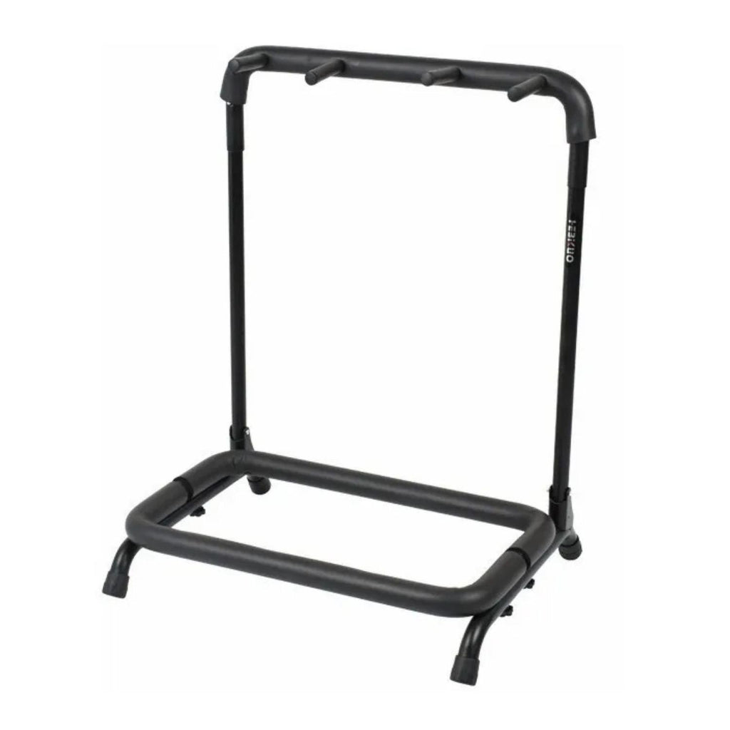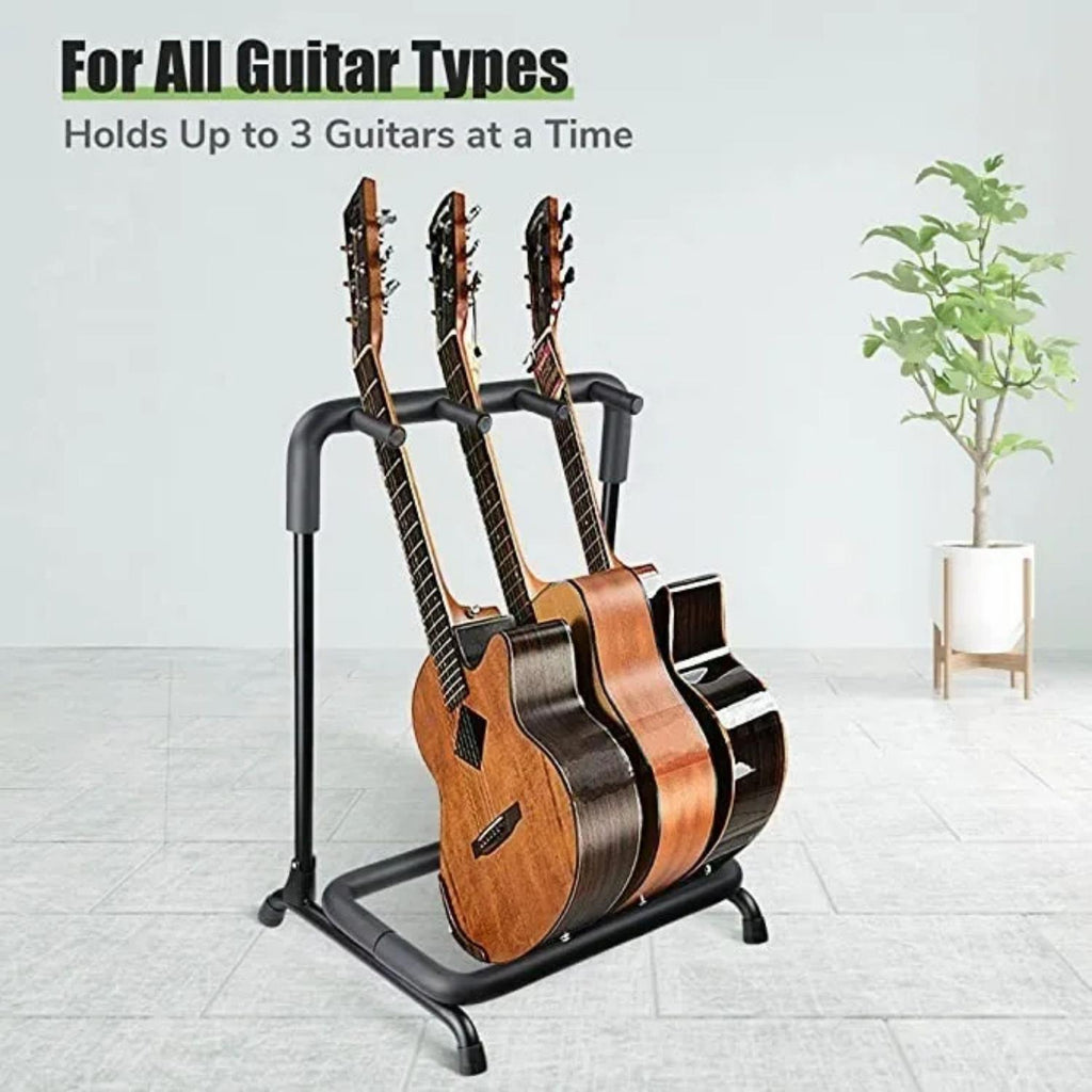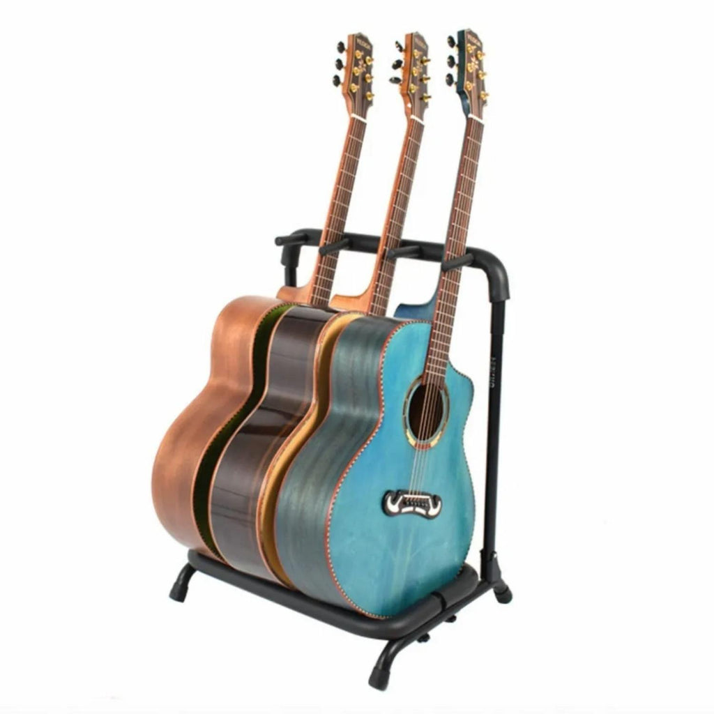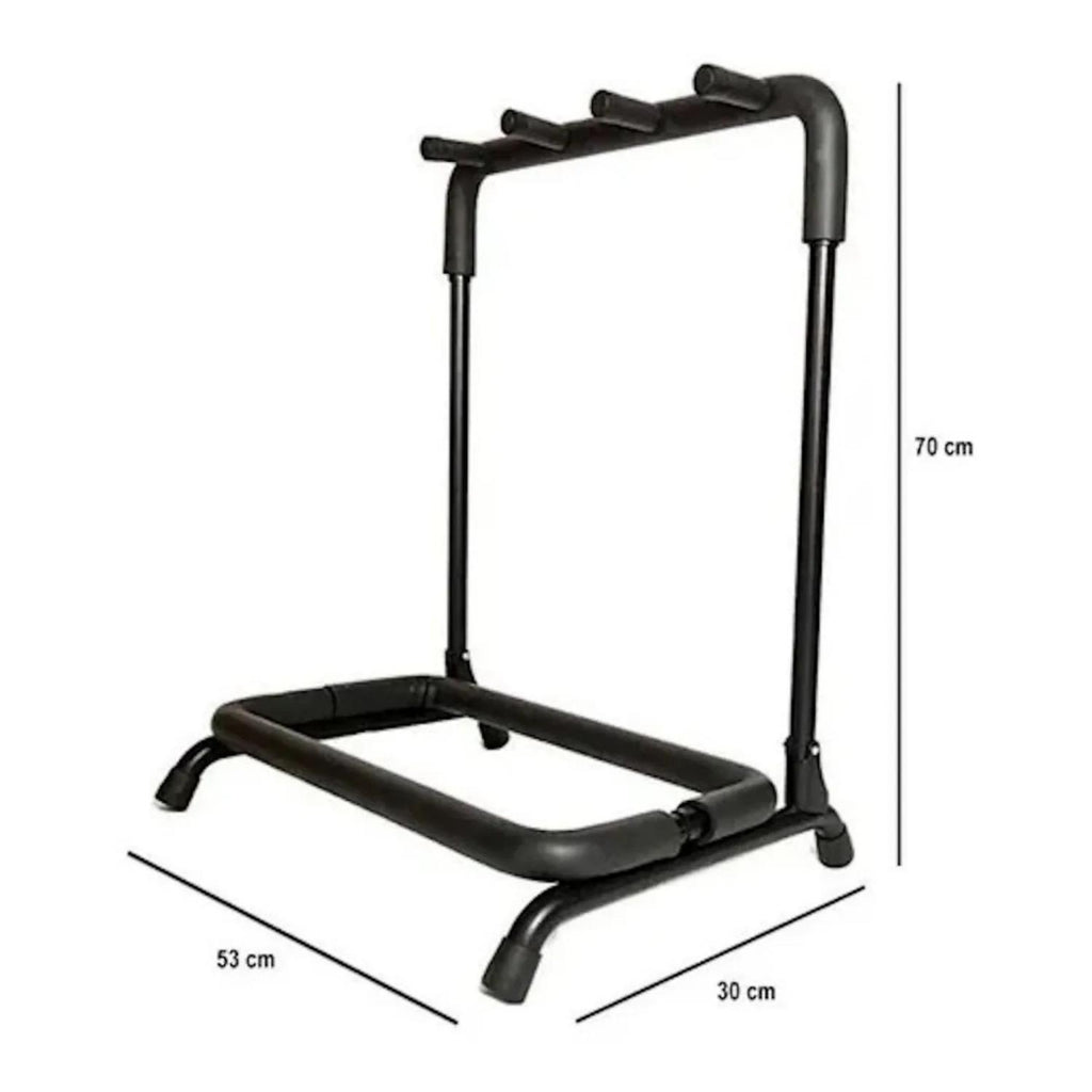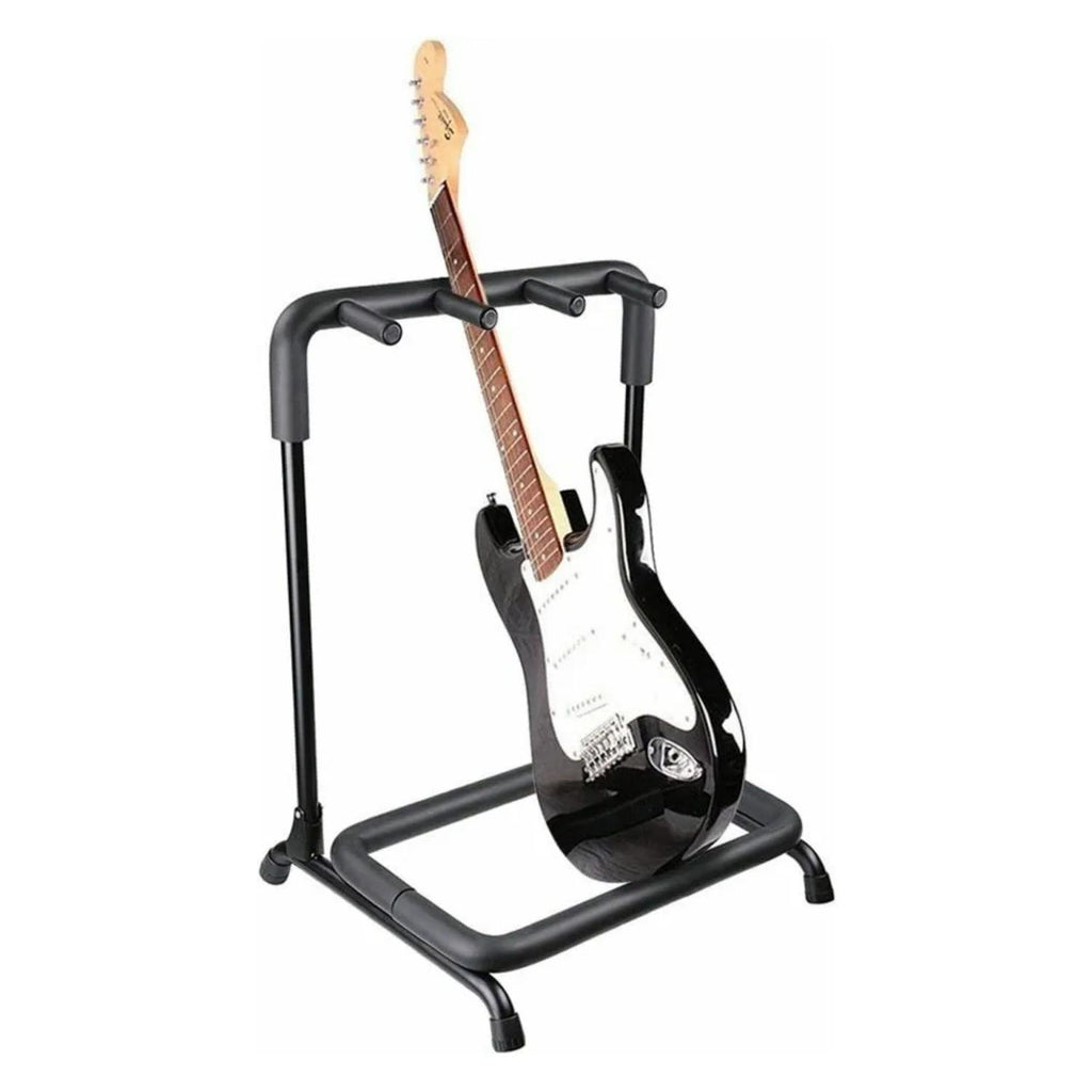 Este soporte metálico es ideal para mantener organizadas y seguras hasta 3 guitarras o bajos en un solo lugar. Fabricado en fierro resistente con terminaciones en goma, protege los instrumentos de rayaduras y deslizamientos, ofreciendo estabilidad y confianza en cada uso.