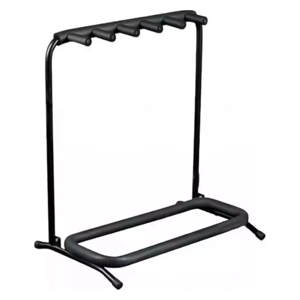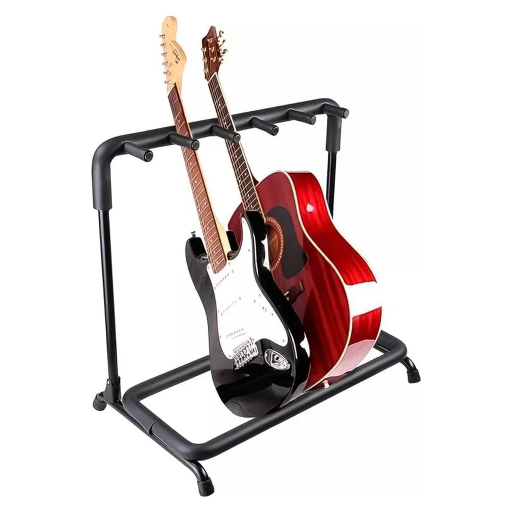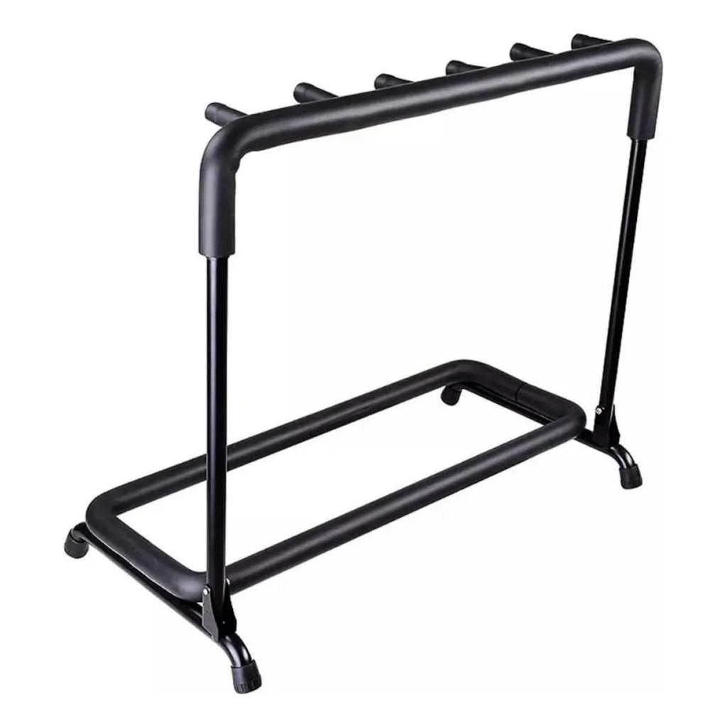 Este soporte metálico es la solución perfecta para organizar hasta 5 guitarras, bajos o ukeleles en un solo lugar. Su diseño resistente, acolchado y ajustable protege los instrumentos de rayaduras y ofrece estabilidad en todo momento.