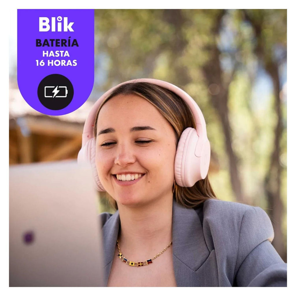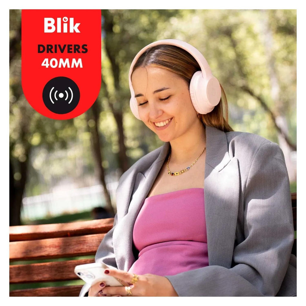 Los audífonos inalámbricos Blik Soul250 en color rosa están diseñados para quienes buscan estilo y un sonido de alta calidad. Con sus drivers de 40 mm ofrecen un audio nítido, envolvente y con graves potentes, brindándote una experiencia auditiva superior. Su batería de larga duración proporciona hasta 16 horas de música continua para acompañarte en cualquier momento del día.