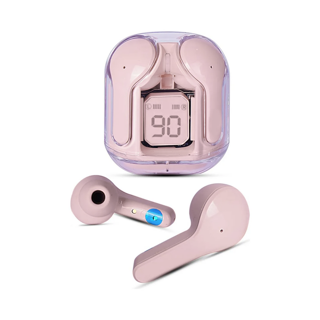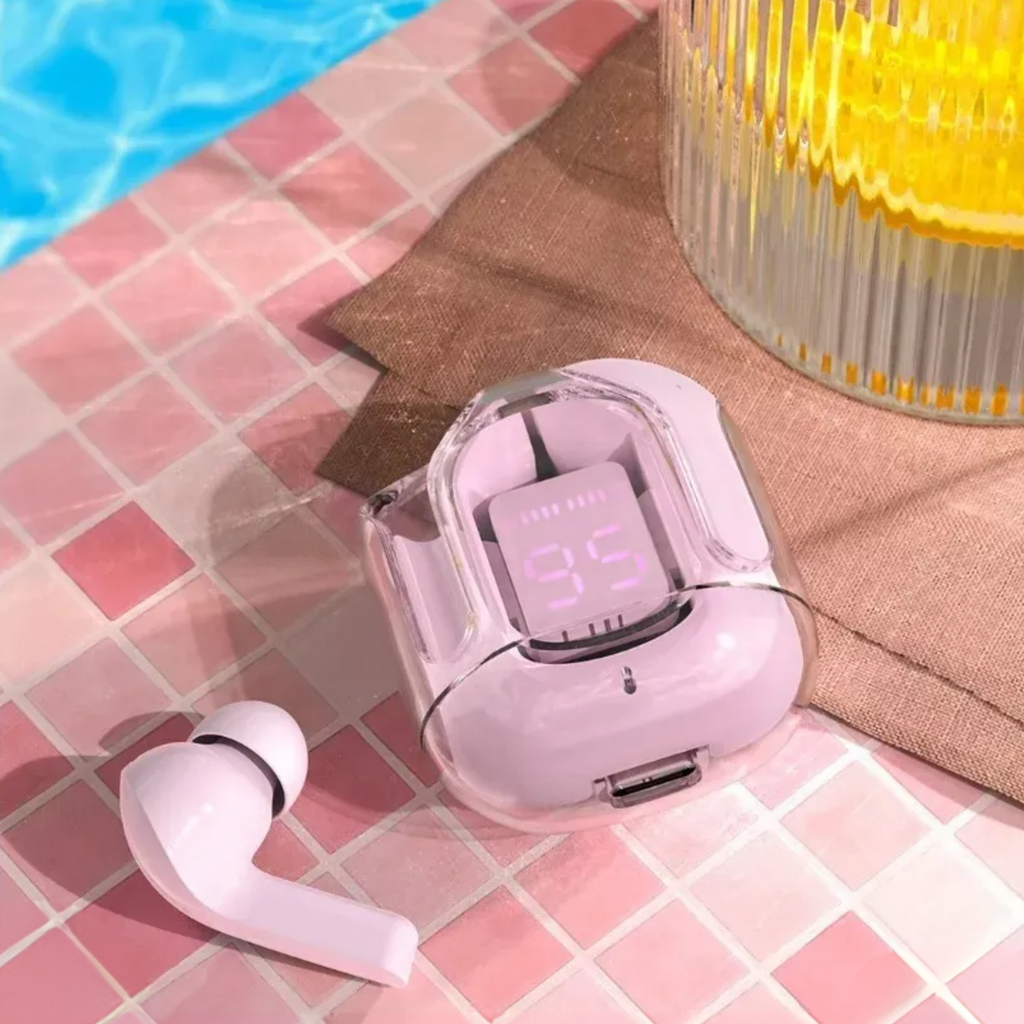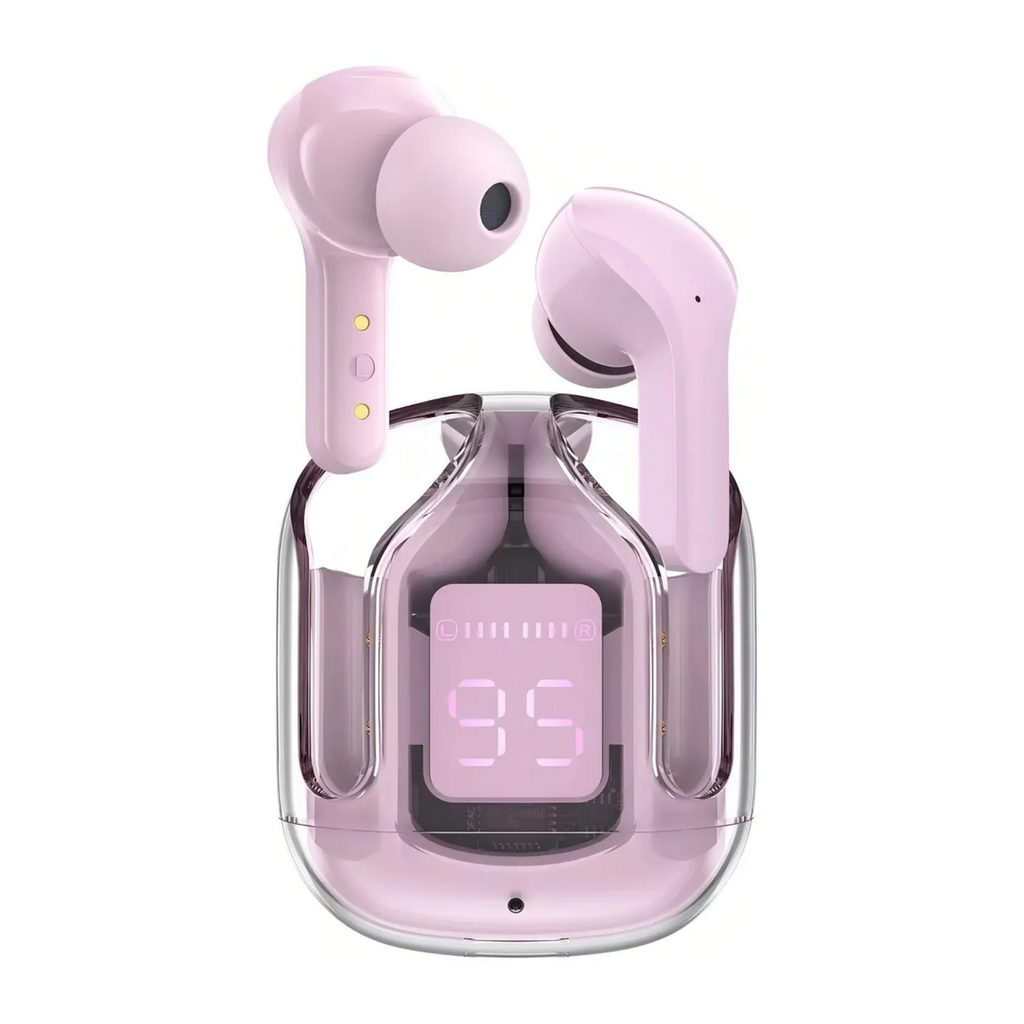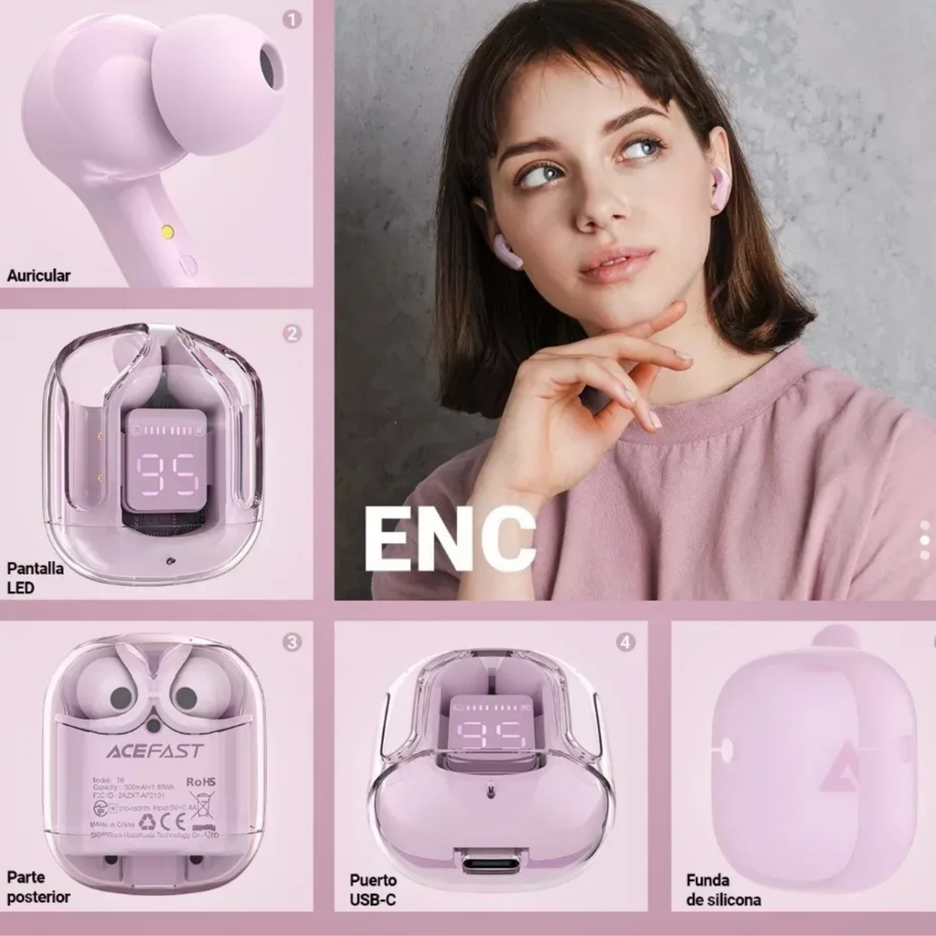 Su pantalla digital LED te muestra en tiempo real la carga restante del estuche, y su diseño translúcido de textura futurista destaca a simple vista. Gracias a su estuche de carga rápida, Además, son resistentes al agua (IPX6) y compatibles con asistentes de voz como Alexa.