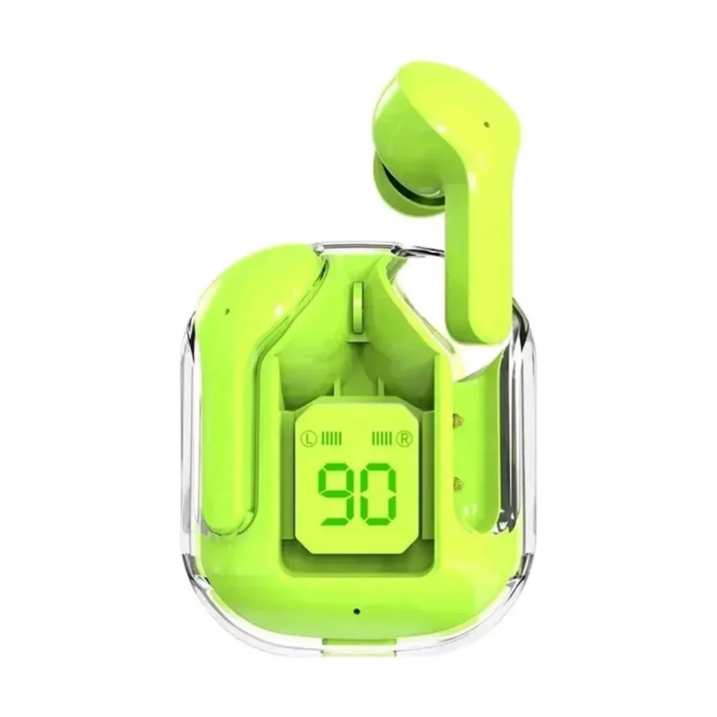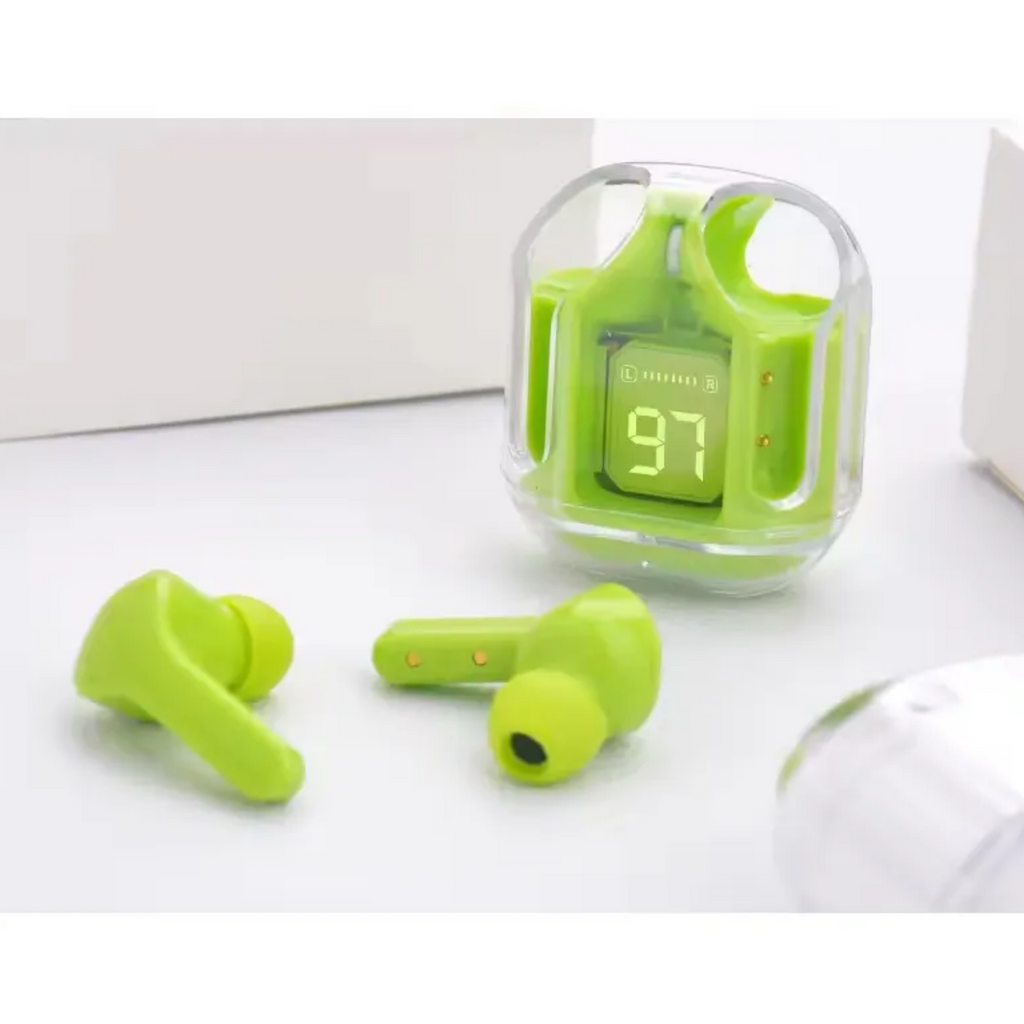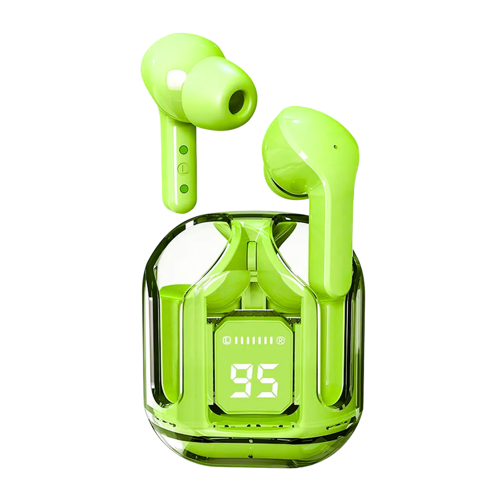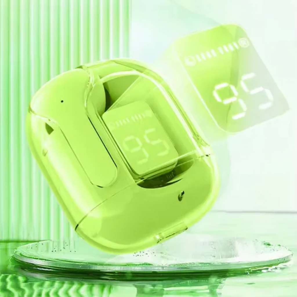 Su pantalla digital LED te muestra en tiempo real la carga restante del estuche, y su diseño translúcido de textura futurista destaca a simple vista. Gracias a su estuche de carga rápida, Además, son resistentes al agua (IPX6) y compatibles con asistentes de voz como Alexa.