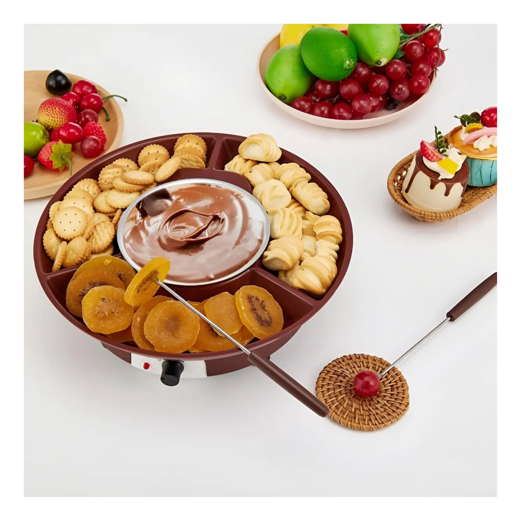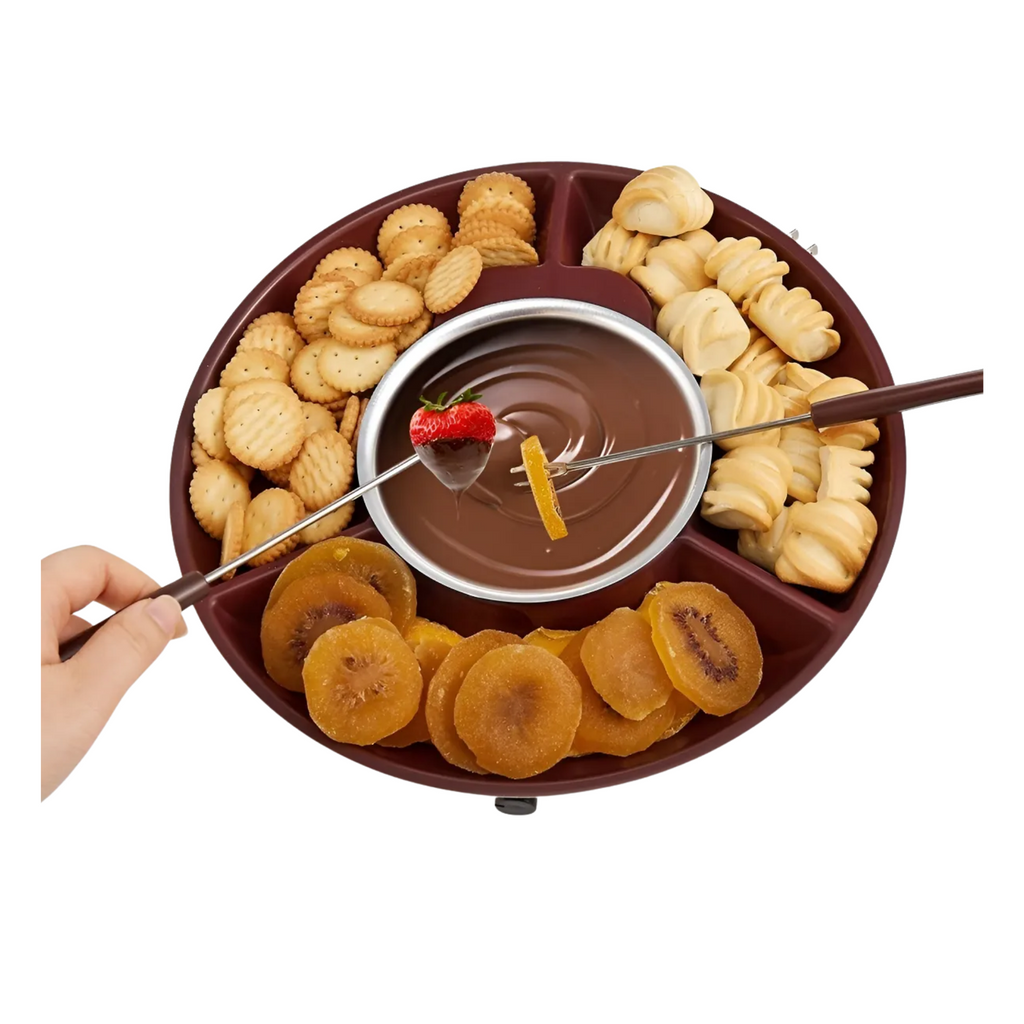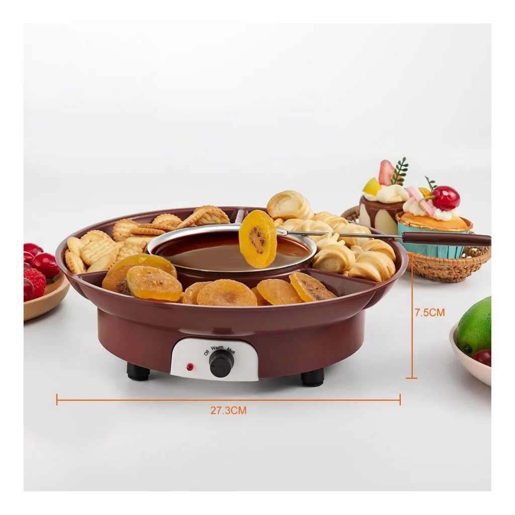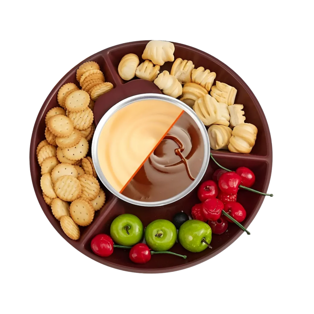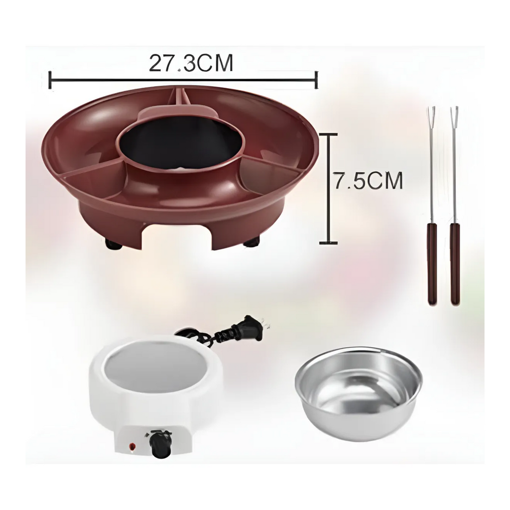 Disfruta de una deliciosa fondue de chocolate con esta Bandeja Extraíble Fundidor de Chocolate, ideal para frutas, malvaviscos, pasteles y otros postres. Fabricada en plástico de alta calidad apto para alimentos con revestimiento de acero inoxidable, es segura, duradera y resistente a la corrosión. Viene con 4 tenedores para sumergir tus bocadillos de manera cómoda y sin complicaciones.