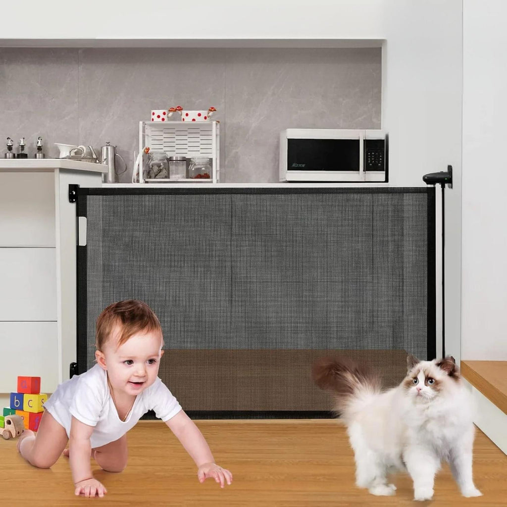 Diseñada para brindar tranquilidad a padres y dueños de mascotas, esta reja retráctil de seguridad combina funcionalidad, diseño moderno y máxima protección. Ideal para colocar en puertas, pasillos o escaleras, su estructura de malla resistente protege a bebés y mascotas, mientras que su sistema de retracción permite ahorrar espacio y evitar tropiezos. Con una altura de 86 cm y una extensión de hasta 1,5 metros, es compatible con la mayoría de los marcos del hogar.