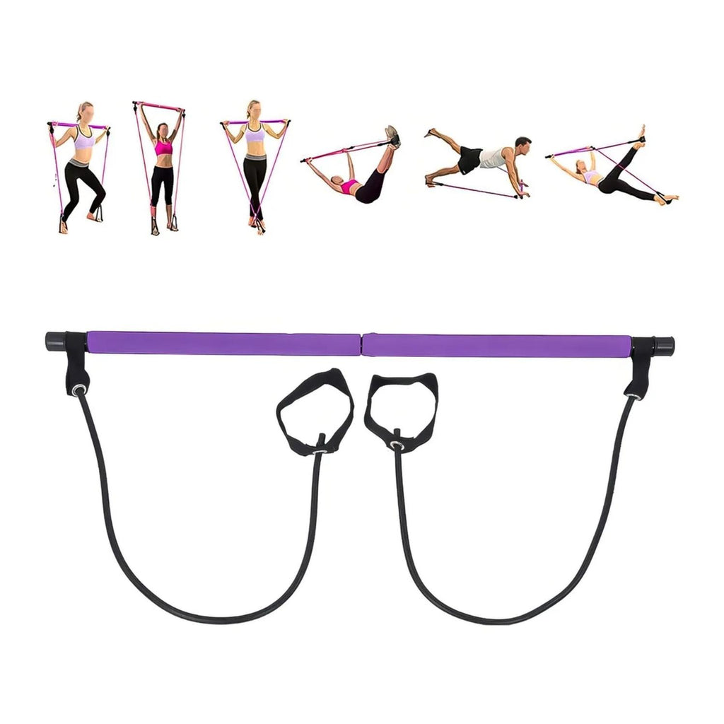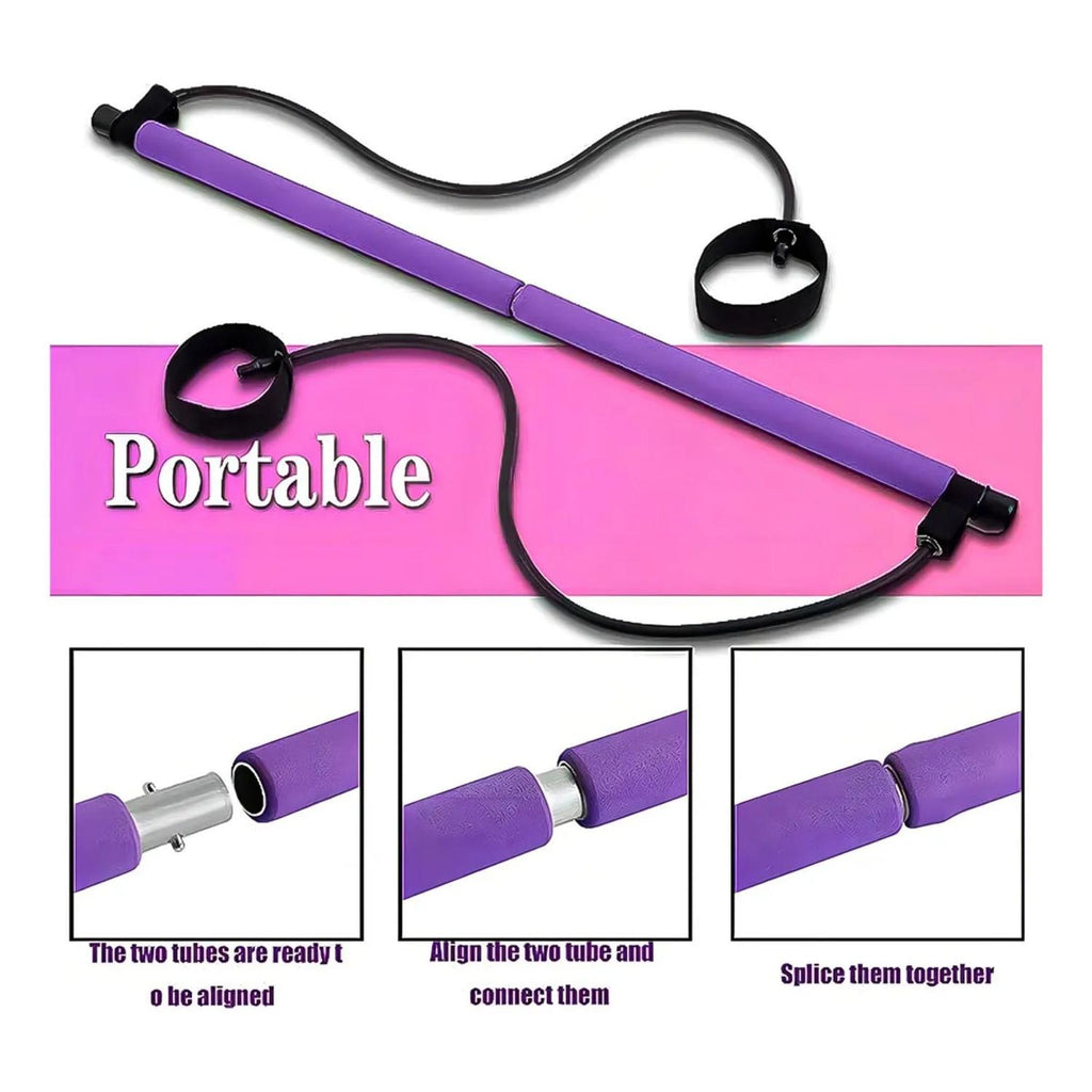 Consigue un entrenamiento de cuerpo completo con esta barra y bandas elásticas, ideal para Pilates, yoga, estiramiento y tonificación de bajo impacto. Diseñada para desarrollar un núcleo fuerte, abdominales planos y músculos largos y tonificados, permite un entrenamiento funcional que protege tus articulaciones y se enfoca en el cuerpo en cada movimiento.