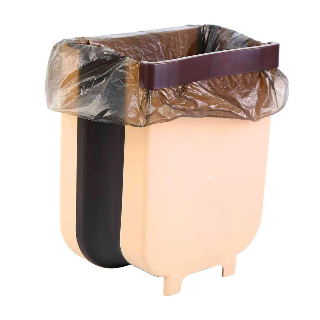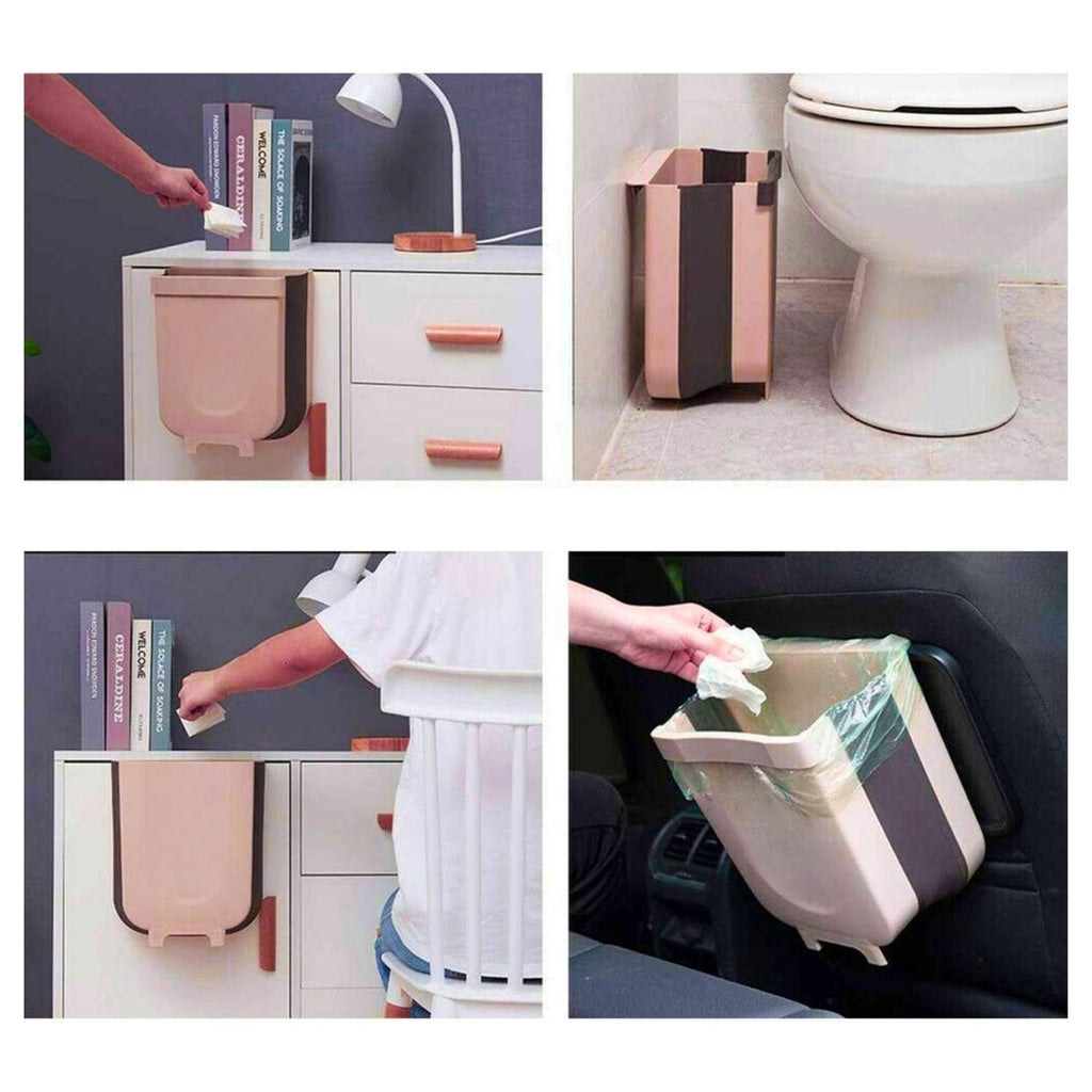 Basurero plegable para cocina que se puede colocar en la puerta del armario, despensa, cajón, coche o cualquier lugar con un grosor de puerta menor a 2,2 cm. Su diseño plegable permite ahorrar espacio cuando no se utiliza, abriéndose solo cuando se necesita. Con capacidad de 8 litros, es ideal para desechar residuos de manera rápida y práctica mientras cocinas.