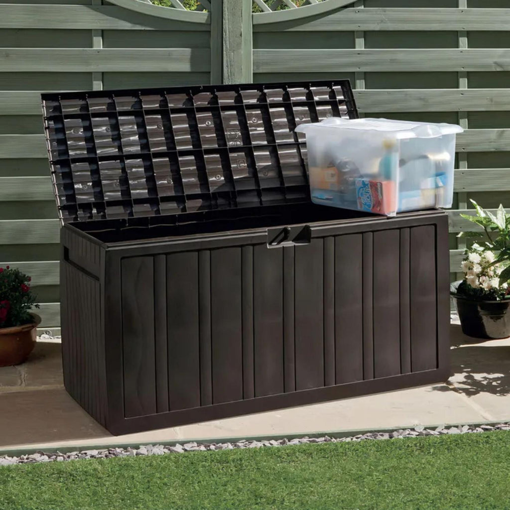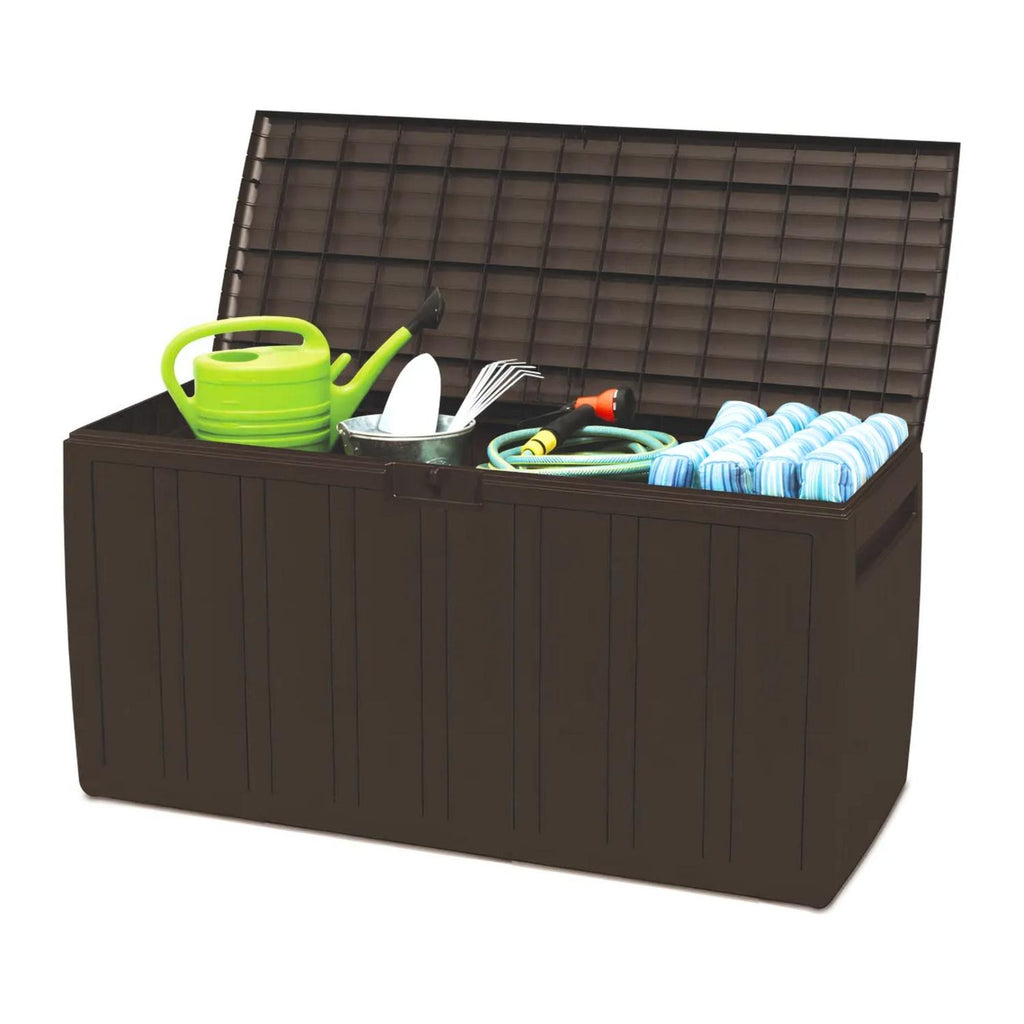 Organiza y almacena tus pertenencias con el baúl organizador de 270 L en color café, ideal para guardar herramientas, juguetes, equipos de jardinería y más. Su diseño robusto y resistente asegura durabilidad, mientras su color café combina con cualquier espacio, ya sea en interiores o exteriores. Mantén todo en orden y protegido con este práctico y elegante baúl de alta capacidad.