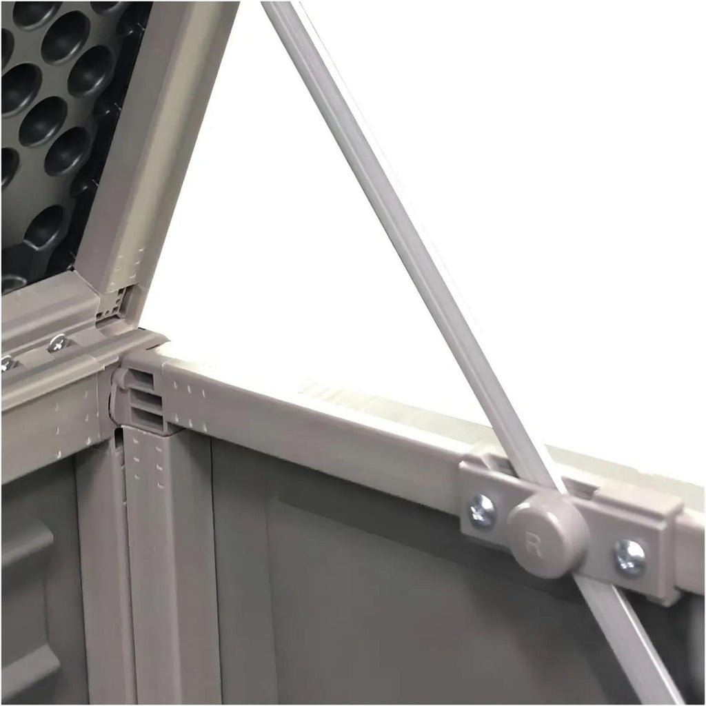 Maximiza el espacio de almacenamiento con este baúl organizador de 830 L, ideal para guardar herramientas, muebles de jardín, juguetes y más. Fabricado en polipropileno y acero, ofrece resistencia y durabilidad tanto en interiores como en exteriores. Su diseño espacioso y seguro protege tus pertenencias del desgaste y la intemperie, mientras que su elegante color gris oscuro se adapta a cualquier ambiente. Además, soporta hasta 2 adultos sentados en la tapa y cuenta con asas moldeadas, bisagras plásticas y barra de seguridad de aluminio para facilitar su uso y transporte.