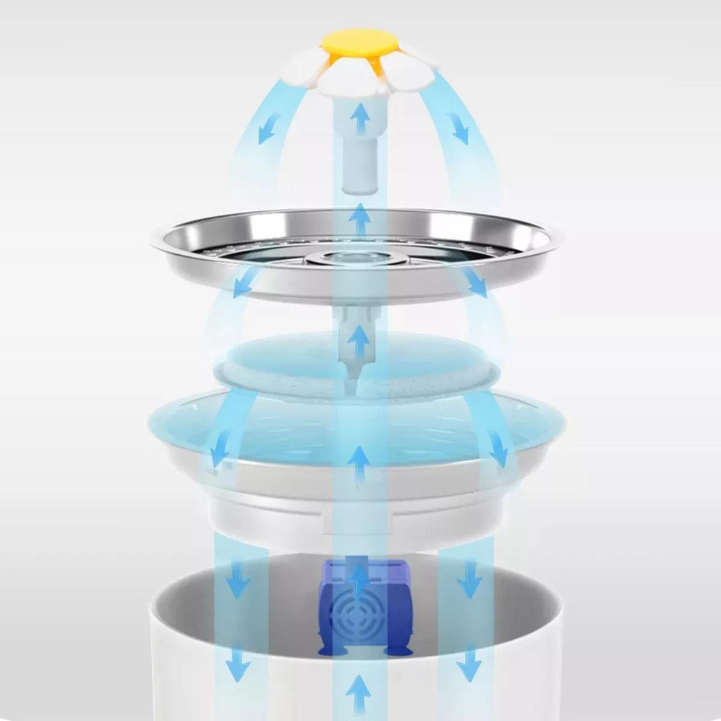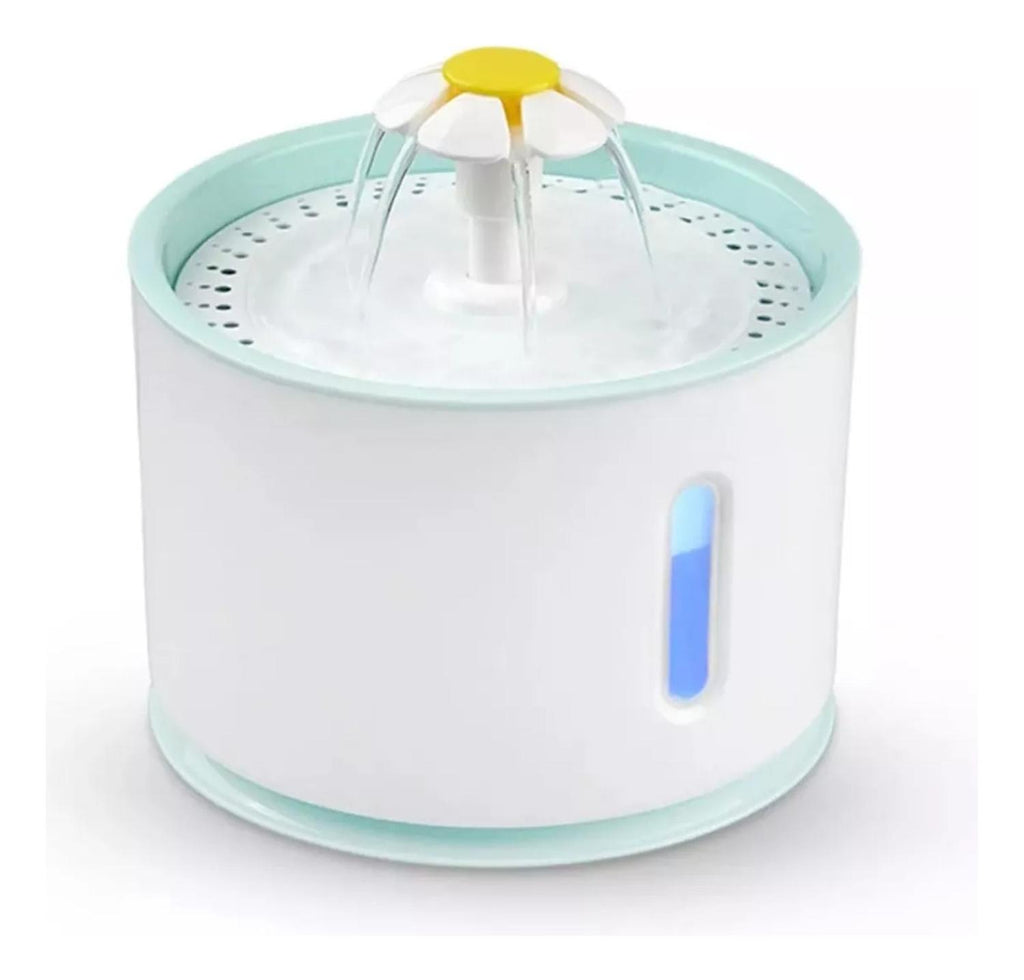 Fuente de agua automática para mascotas con capacidad de 2.4 L.-Este dispensador de agua utiliza un enchufe USB. Tiene luz led que indica si hay o no agua en el tanque.-Es una fuente de agua silenciosa así que no habrá ruido que lo moleste mientras esta descansa-Incluye diferentes filtros de agua así que tendrá varias capas de protección. Se filtra partículas grandes, pelos, residuos de comida y microorganismos así que el agua que su mascota consuma estará limpia y sin ninguna clase de residuos-Puedes escoger entre dos diferentes fluctuaciones de agua, tipo fuente o tipo cascada. Medidas: 13 x 19 x 19 cm. Material: Plástico. Automático: Si. Capacidad en Volumen: 2.4 L. Voltaje: 110 / 240 V. Capacidad de Peso: 9 g. Antiahogo: Si. Color: Celeste. Producto 100% Recomendado. Garantia de 6 Meses.