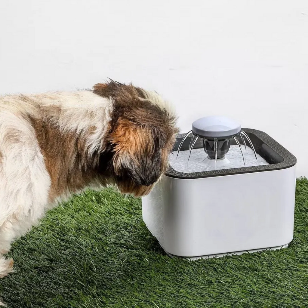 Aunque requiere llenado manual, su sistema de fuente mantiene el agua en movimiento constante, lo que incentiva a tus mascotas a beber más. Compatible con adaptadores USB de 5V, es una opción segura, silenciosa y eficiente para el bienestar de tus compañeros de cuatro patas.