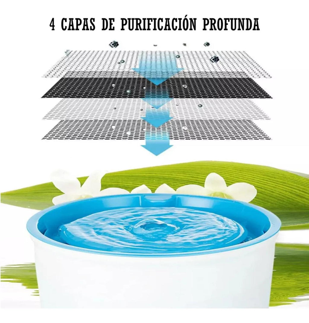Fuente de agua automática para mascotas con capacidad de 2 L.-Este dispensador de agua utiliza un enchufe USB. Tiene luz led que indica si hay o no agua en el tanque.-Es una fuente de agua silenciosa así que no habrá ruido que lo moleste mientras esta descansa-Incluye diferentes filtros de agua así que tendrá varias capas de protección. Se filtra partículas grandes, pelos, residuos de comida y microorganismos así que el agua que su mascota consuma estará limpia y sin ninguna clase de residuos-Puedes escoger entre dos diferentes fluctuaciones de agua, tipo fuente o tipo cascada. Medidas: 11 x 17 x 17 cm. Material: Plástico. Automático: Si. Capacidad en Volumen: 2 L. Voltaje: 220 V. Capacidad de Peso: 9 g. Antiahogo: Si. Color: Azul. Producto 100% Recomendado. Garantia de 6 Meses.