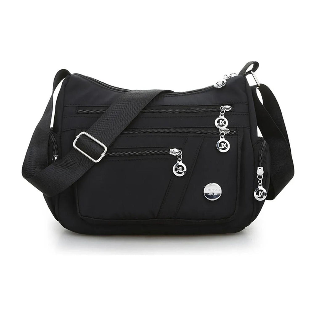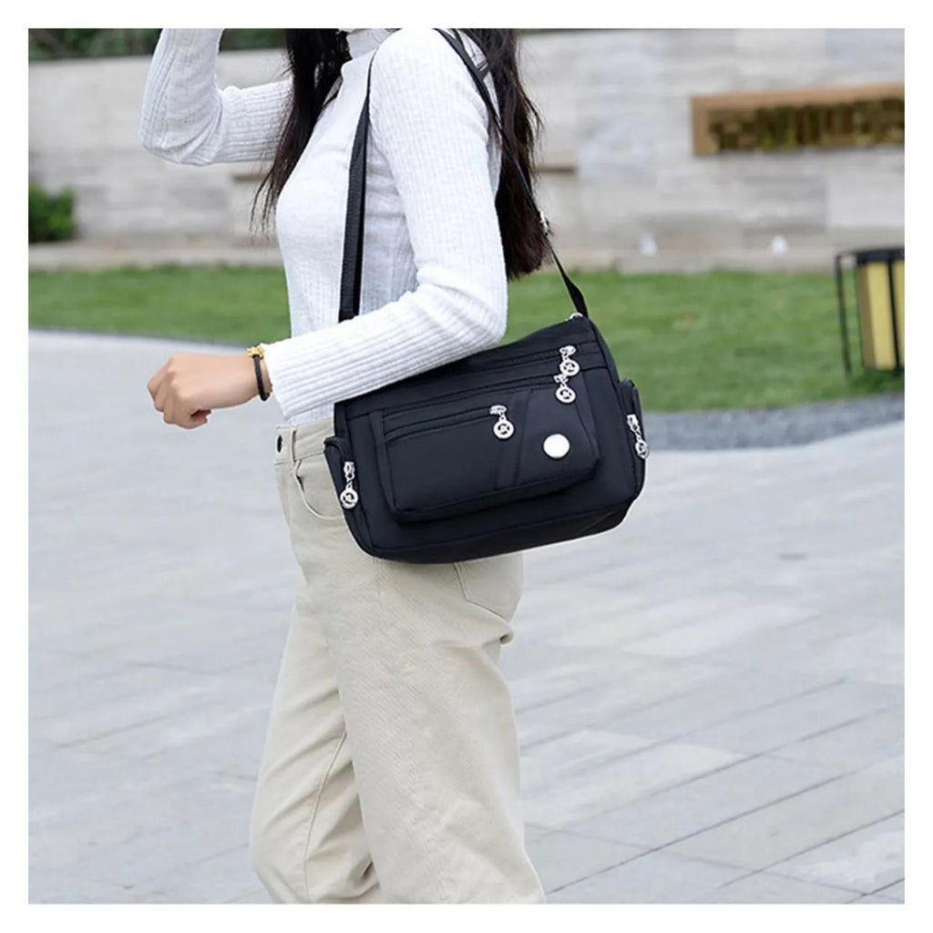 Este bolso crossbody impermeable y antirobo para mujer está fabricado con nailon resistente al agua y un forro de poliéster de alta calidad, garantizando durabilidad y protección para tus objetos personales. Su diseño ligero y multifuncional permite llevarlo como bolso, bolso de hombro o cruzado, ideal para viajes, mandados o uso diario. Cuenta con múltiples compartimentos y bolsillos con cremallera, que ofrecen amplia capacidad para guardar desde pasaporte y dispositivos electrónicos hasta cosméticos y botellas de agua.