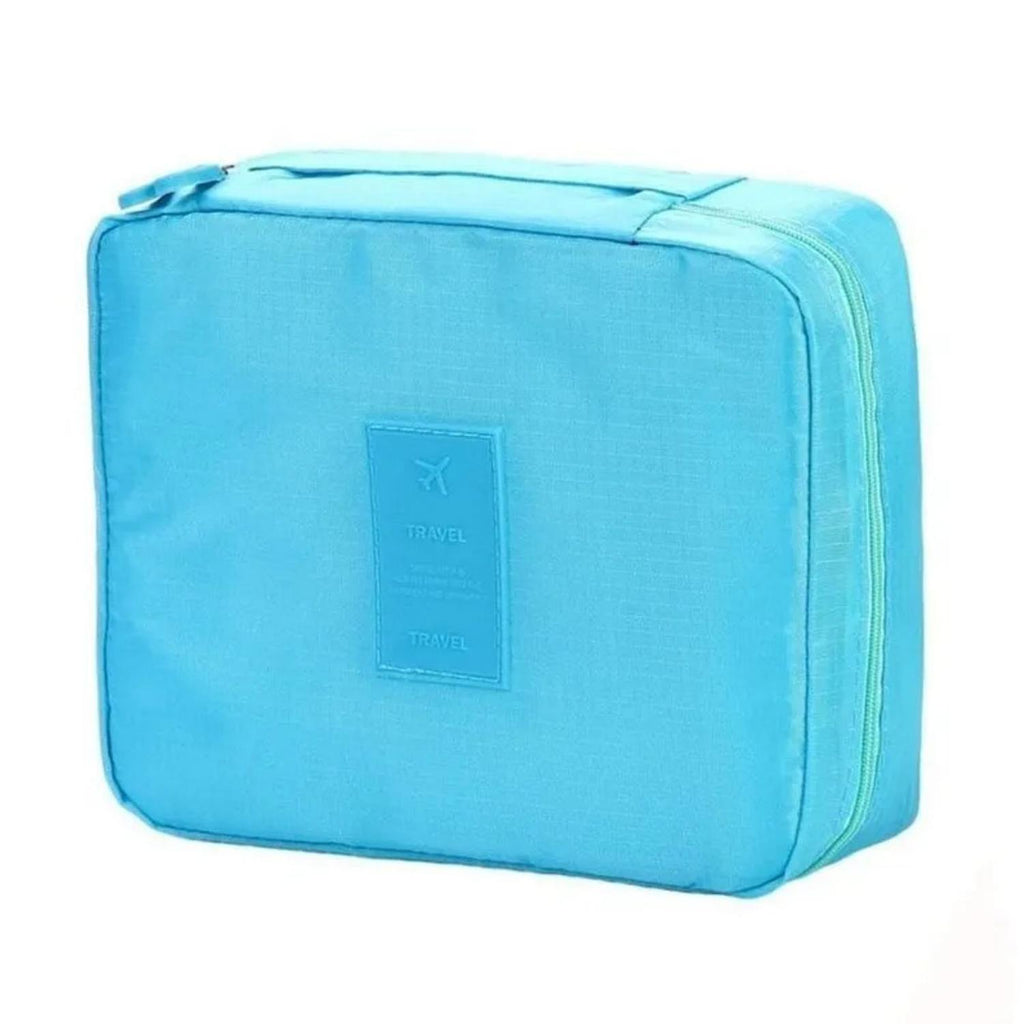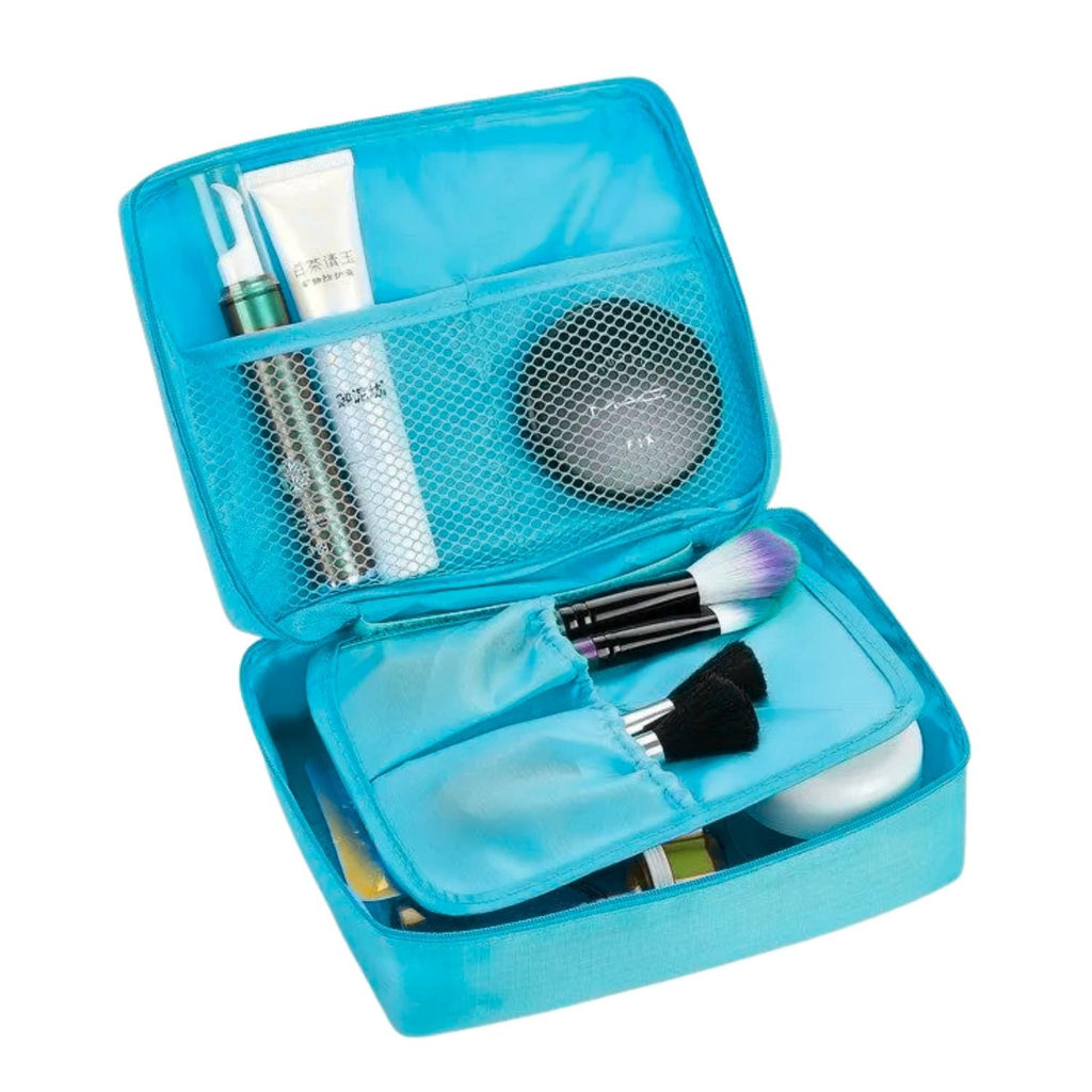 Lleva todo lo que necesitas de forma ordenada y segura con este práctico bolso neceser organizador de cosméticos de 6 litros en color celeste. Con un diseño compacto y funcional, incluye 5 secciones diferentes para clasificar fácilmente tus artículos de cuidado personal, maquillaje o accesorios. Ideal para viajes o uso diario, su interior cuenta con una división intermedia removible con velcro, lo que permite adaptarlo a tus necesidades según el tipo de contenido.