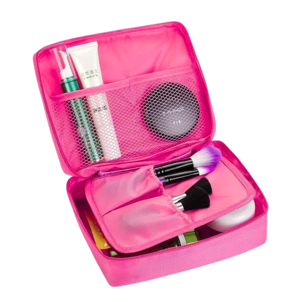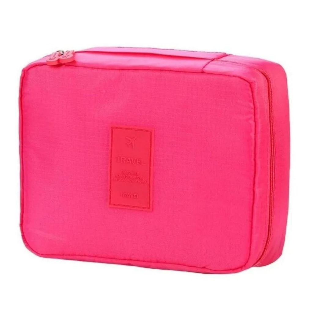 Fabricado en nylon impermeable de alta calidad, este neceser es resistente al uso y fácil de limpiar, brindando durabilidad y protección a tus pertenencias. Su formato portátil te permite guardarlo cómodamente en tu maleta, mochila o bolso sin ocupar demasiado espacio.