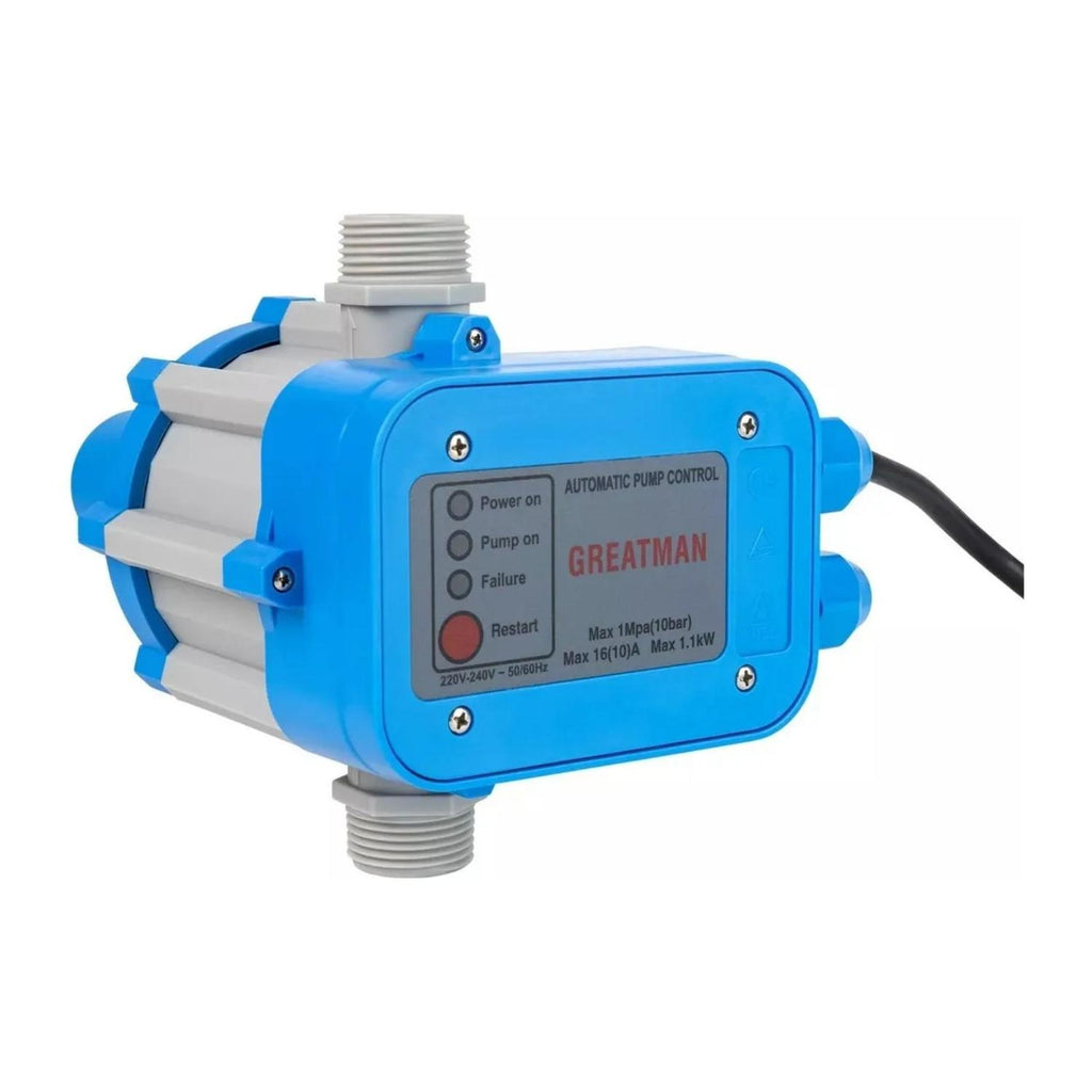 Incluye controlador con potencia de 1,5 HP, corriente de 10 A y presión de trabajo de hasta 10 bar, con protección IP65. Su diseño permite una succión máxima de 8 metros y operación segura hasta 60 °C, garantizando un suministro de agua confiable para distintas aplicaciones residenciales, comerciales o industriales.