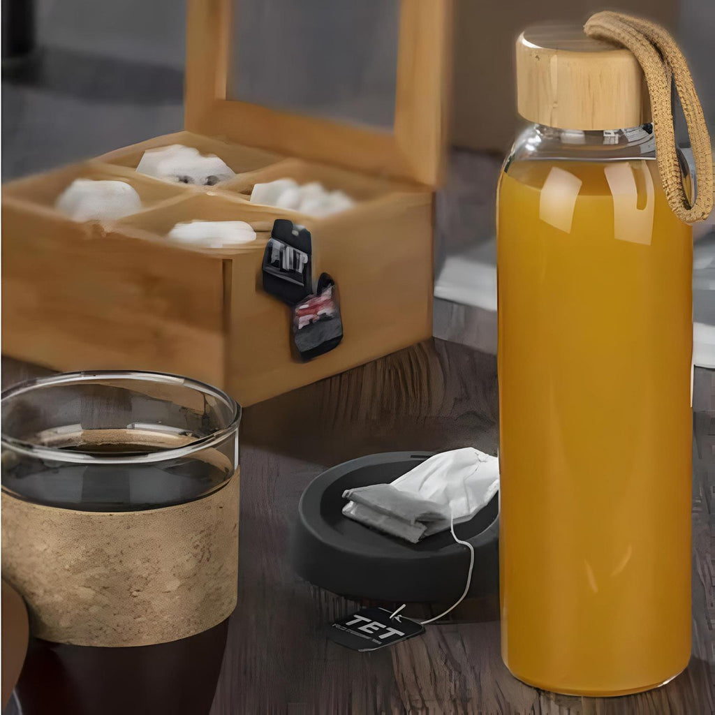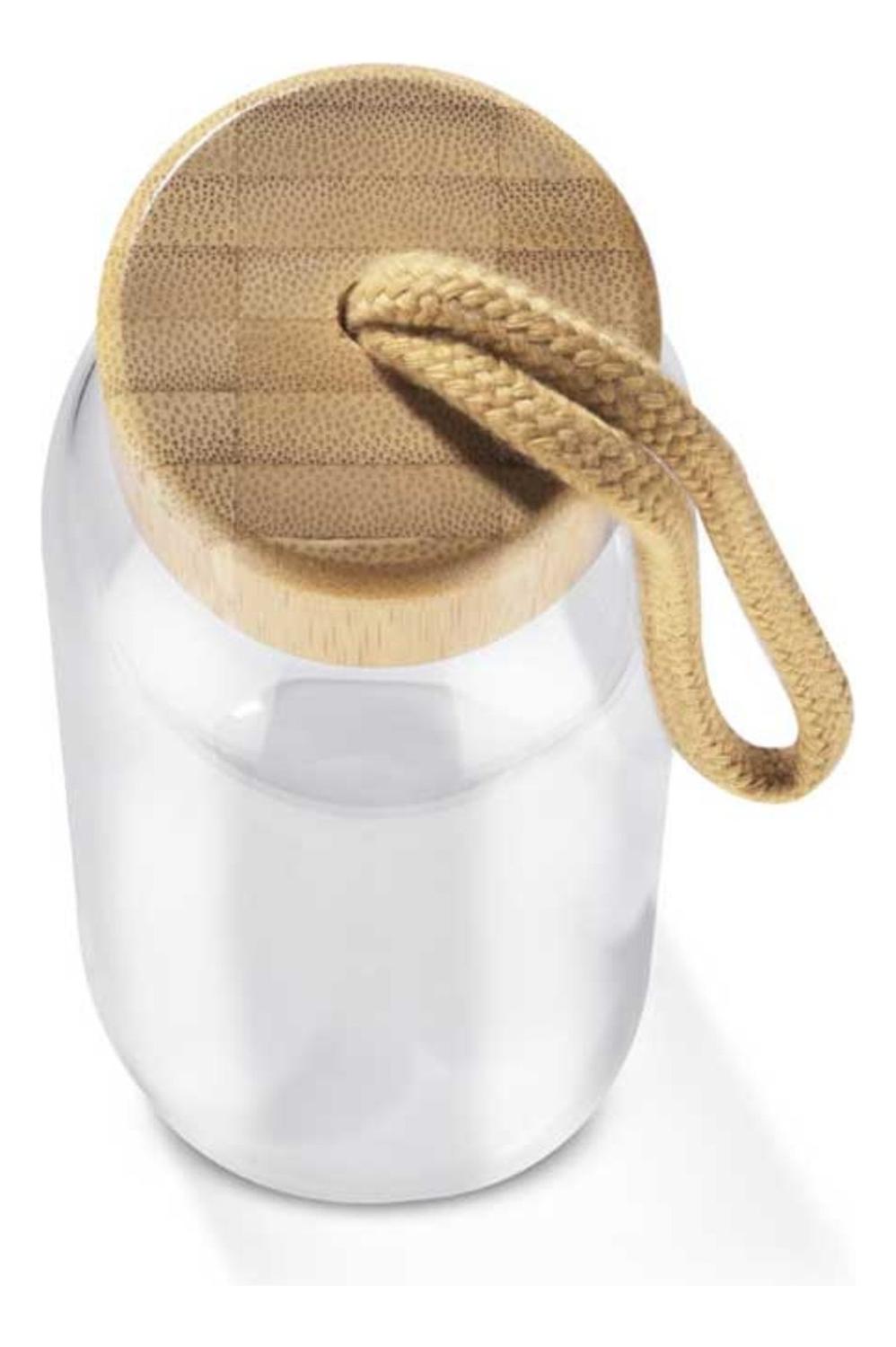 Botella de vidrio con tapa rosca de bambú y cinta transportable de cordón trenzado. Ideal para bebidas frías como té helado, café helado, bebidas, hierbas o jugo de frutas. Su hermoso y elegante diseño, entrega un estilo único, que te acompañara día a día. Incluye silicona antiderrame. Capacidad de 500 ml. Medidas producto: 22.3 × 6.3 cm. Material: Vidrio y bambú. Color: Café. Medidas empaque: 23x7x7 cm. Peso producto: 0.255 kg. Producto 100% recomendado. Garantía Legal de 6 meses.