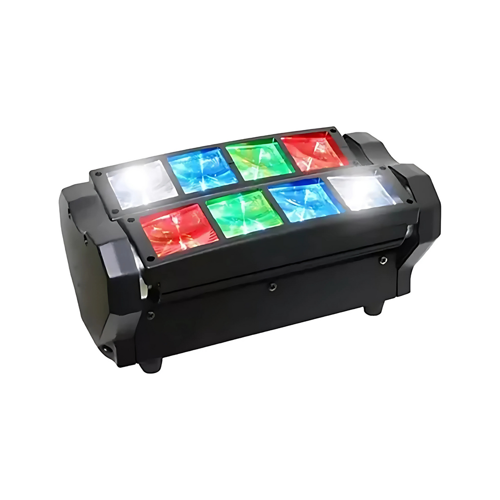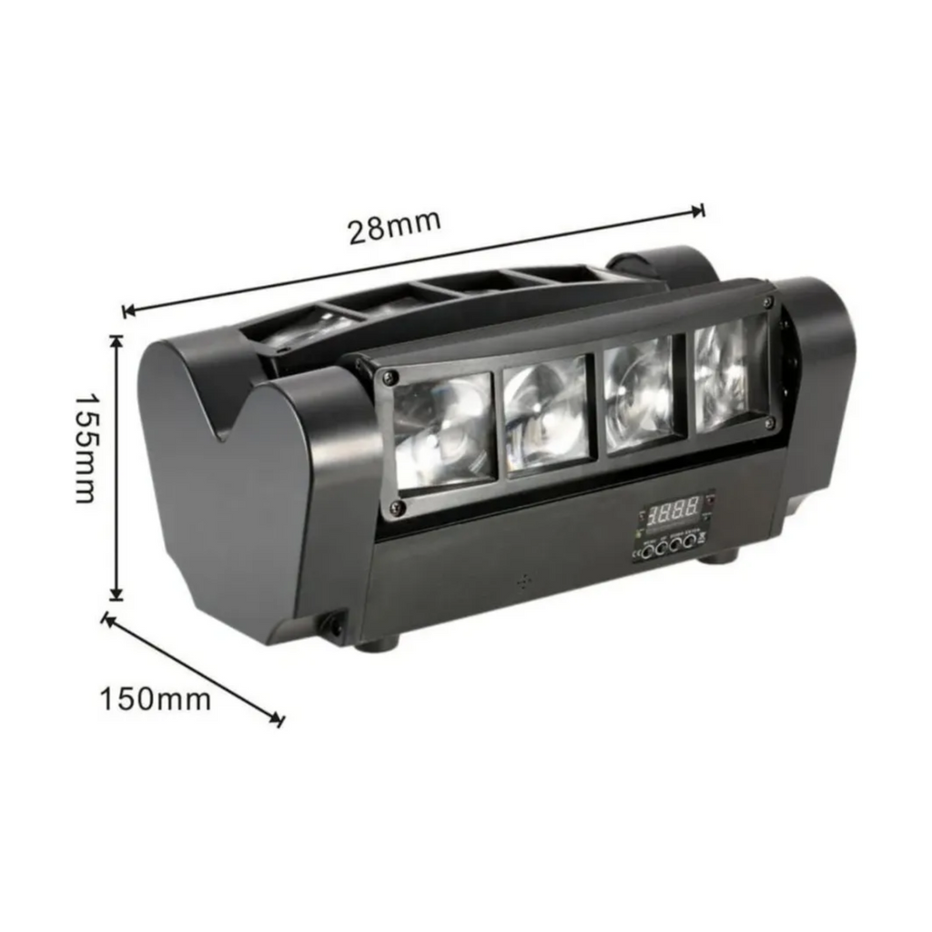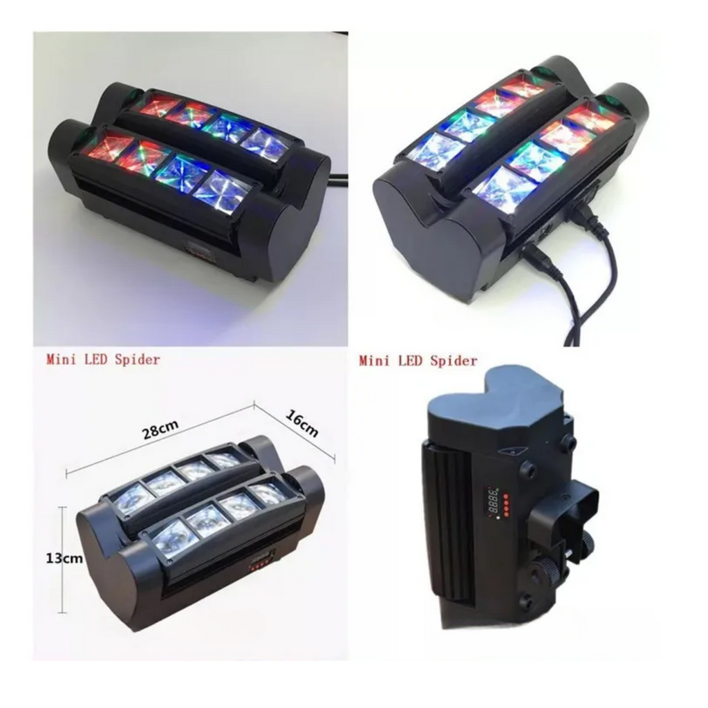 ¿Quieres ser el centro de atención y llenar tu evento de energía y color? Esta mini araña LED de 30W con 8 LEDs RGBW ofrece un espectáculo visual impresionante con efectos de salto de color, cambio gradual y estroboscópicos que harán vibrar cualquier ambiente. Su cabeza móvil rotativa de 180° y amplio ángulo de iluminación de 120° crean un escenario dinámico y lleno de vida para bares, discotecas, fiestas y eventos profesionales o casuales.