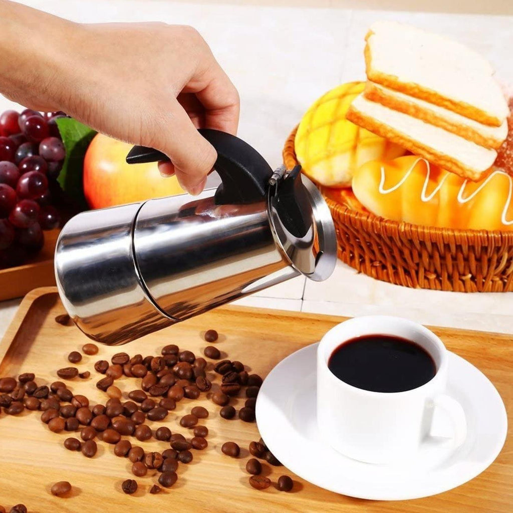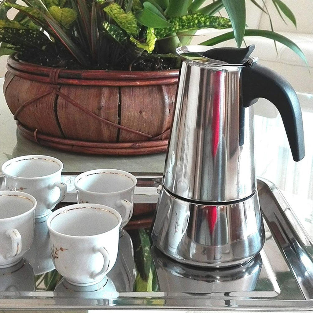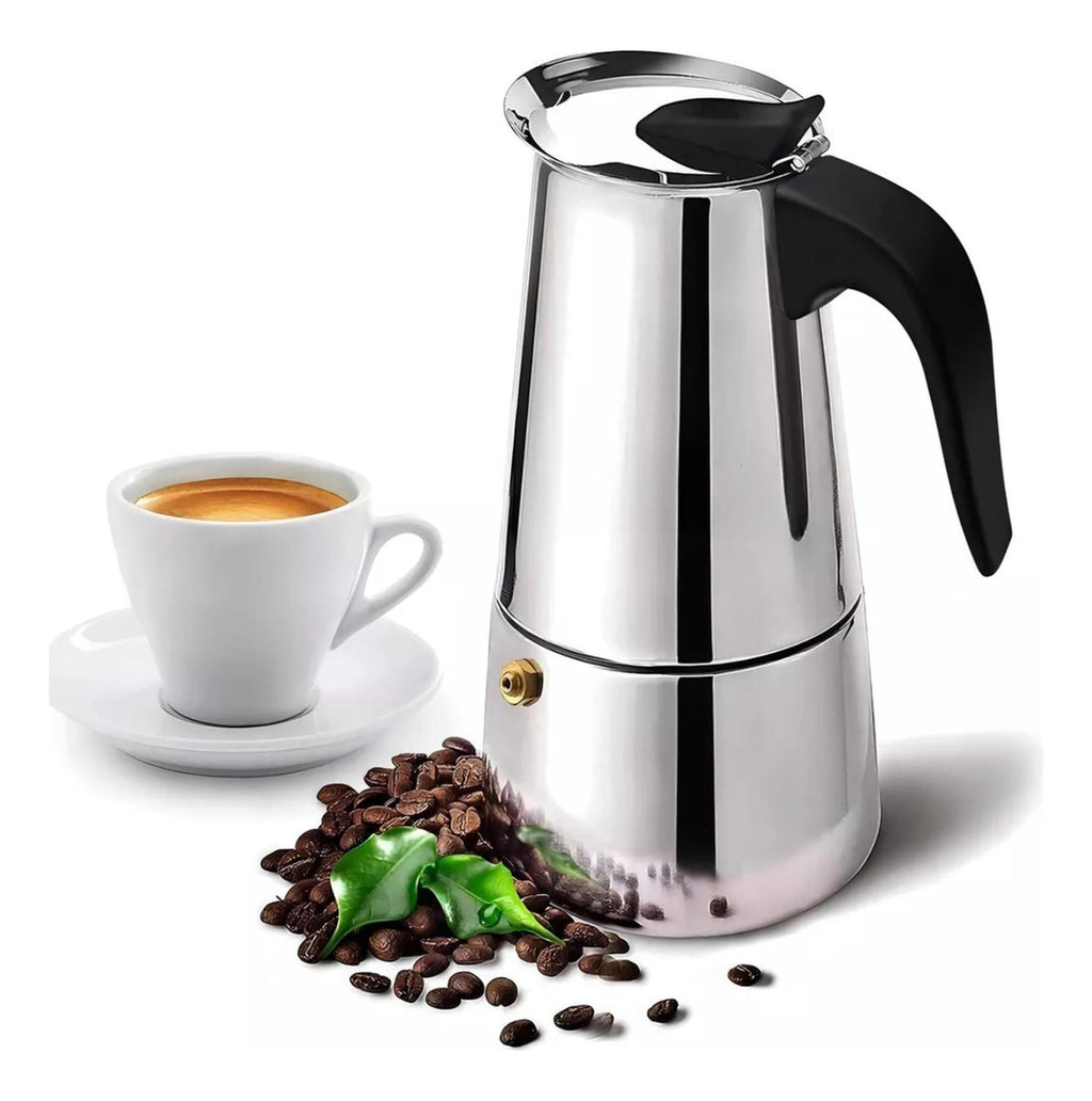 Su diseño elegante y moderno en acero inoxidable garantiza durabilidad y fácil limpieza, manteniendo la cafetera siempre reluciente. Con capacidad para 160 ml (4 tazas de 50 ml), es ideal para comenzar el día con energía o para una pausa llena de sabor en cualquier momento.