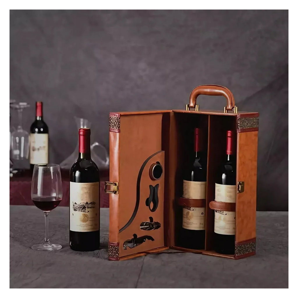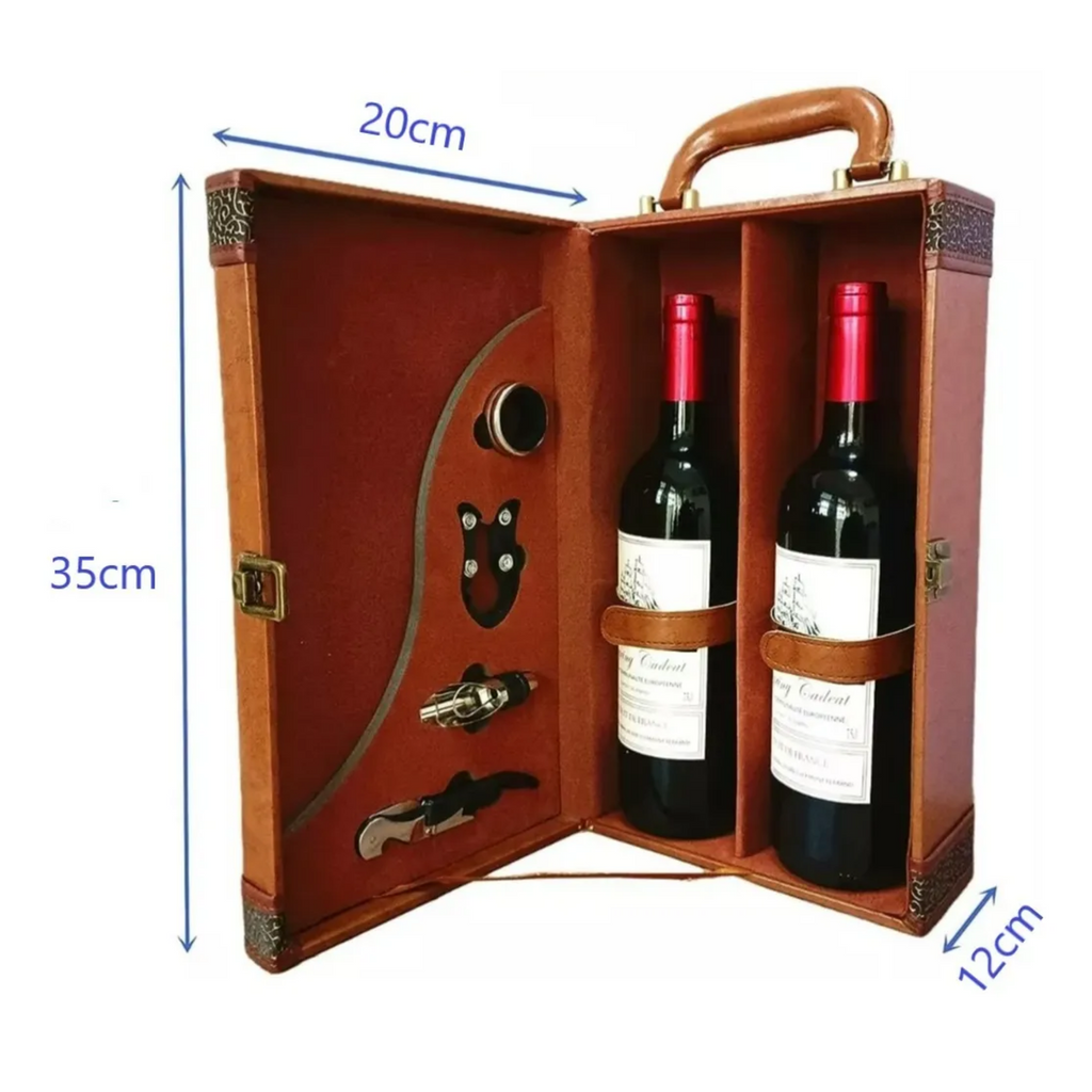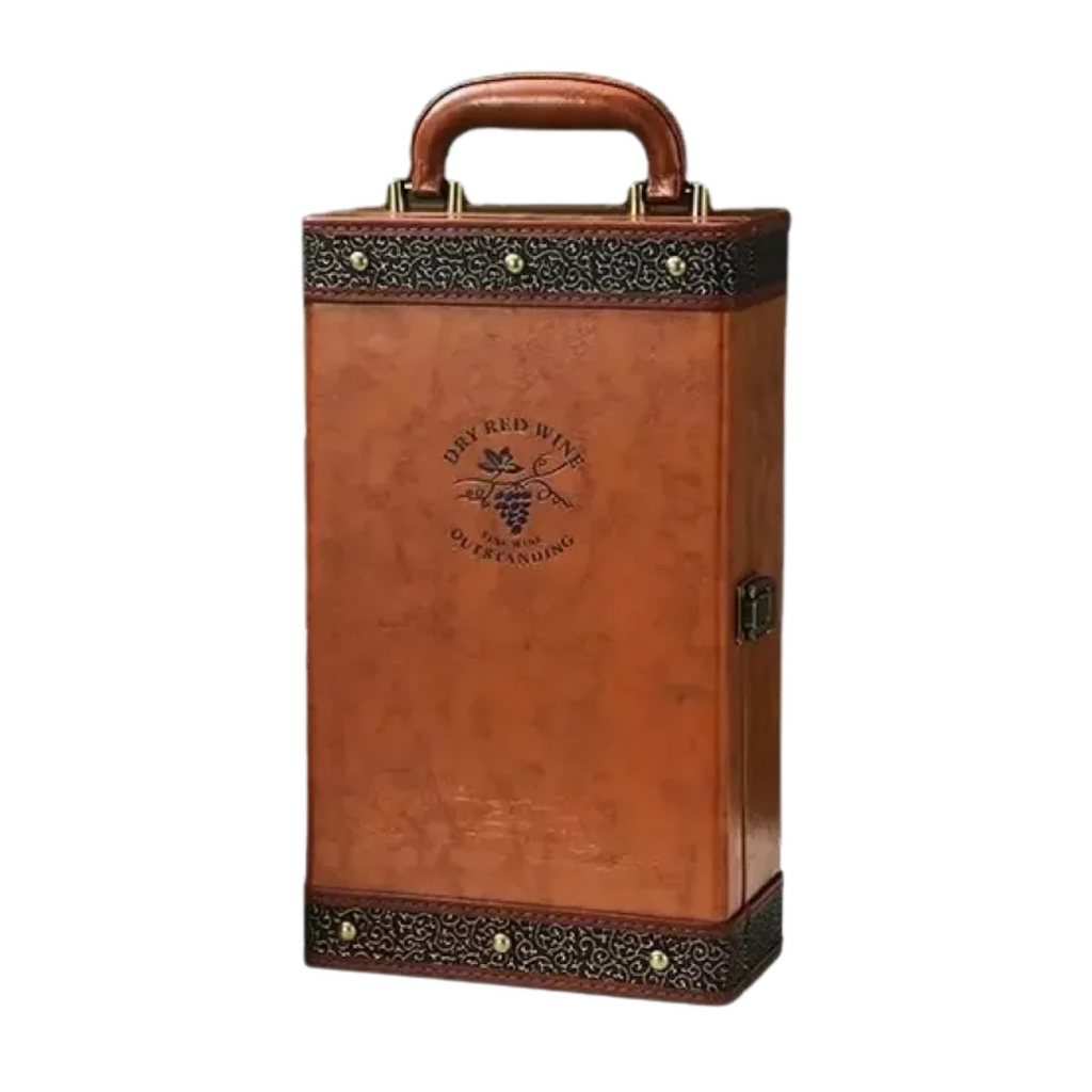 Su diseño incluye un práctico mango que facilita el transporte, convirtiéndola en una opción ideal para cenas, regalos o eventos especiales. Compacta y ligera, esta caja porta vinos es perfecta para quienes buscan combinar funcionalidad con sofisticación. Su acabado elegante y resistente la hace destacar como un accesorio imprescindible para los amantes del vino.