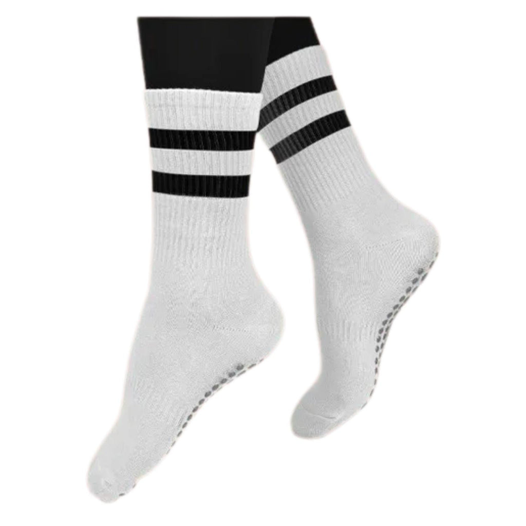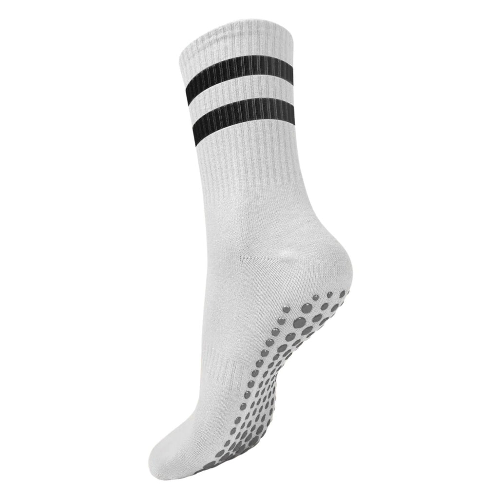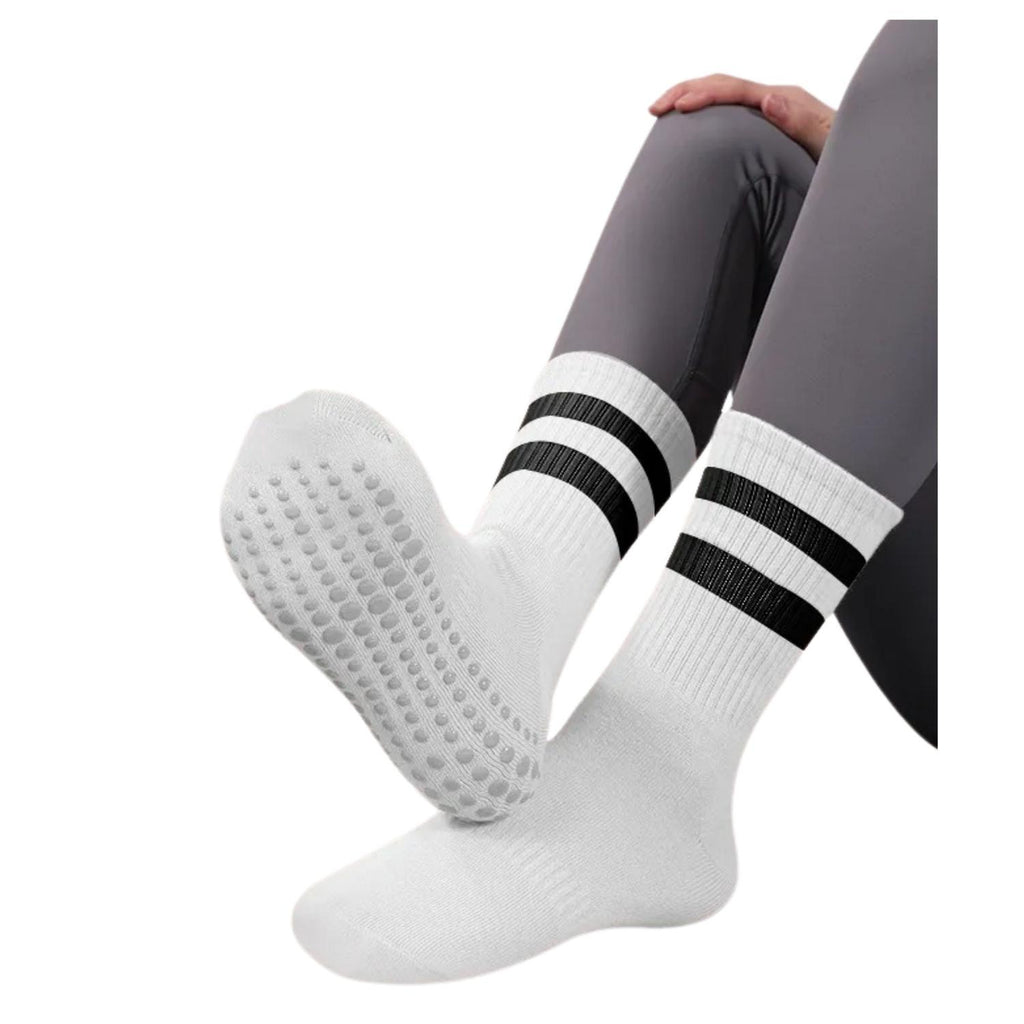Disfruta de la máxima comodidad y seguridad durante tus rutinas de yoga, pilates o cualquier actividad deportiva con este set de 2 pares de calcetines antideslizantes en color blanco. Fabricados en algodón suave y transpirable, mantienen tus pies secos y cómodos gracias a su alta elasticidad y diseño de media pantorrilla que envuelve el pie y tobillo para evitar rozaduras y ofrecer mayor protección. Su punta cerrada aporta un toque moderno y práctico, funcionando también como una ligera zapatilla para uso en casa.