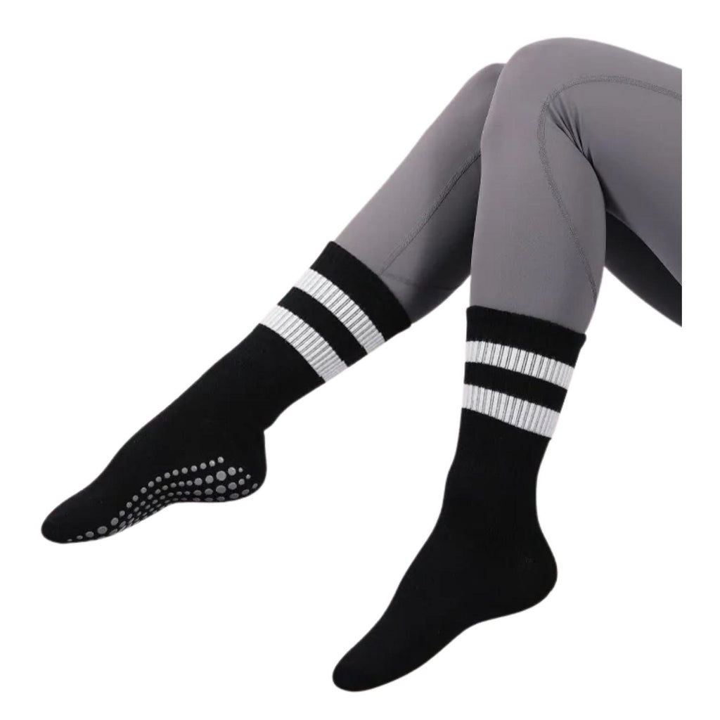 Disfruta de la máxima comodidad y seguridad durante tus rutinas de yoga, pilates o cualquier actividad deportiva con este set de 2 pares de calcetines antideslizantes en color blanco. Fabricados en algodón suave y transpirable, mantienen tus pies secos y cómodos gracias a su alta elasticidad y diseño de media pantorrilla que envuelve el pie y tobillo para evitar rozaduras y ofrecer mayor protección. Su punta cerrada aporta un toque moderno y práctico, funcionando también como una ligera zapatilla para uso en casa.