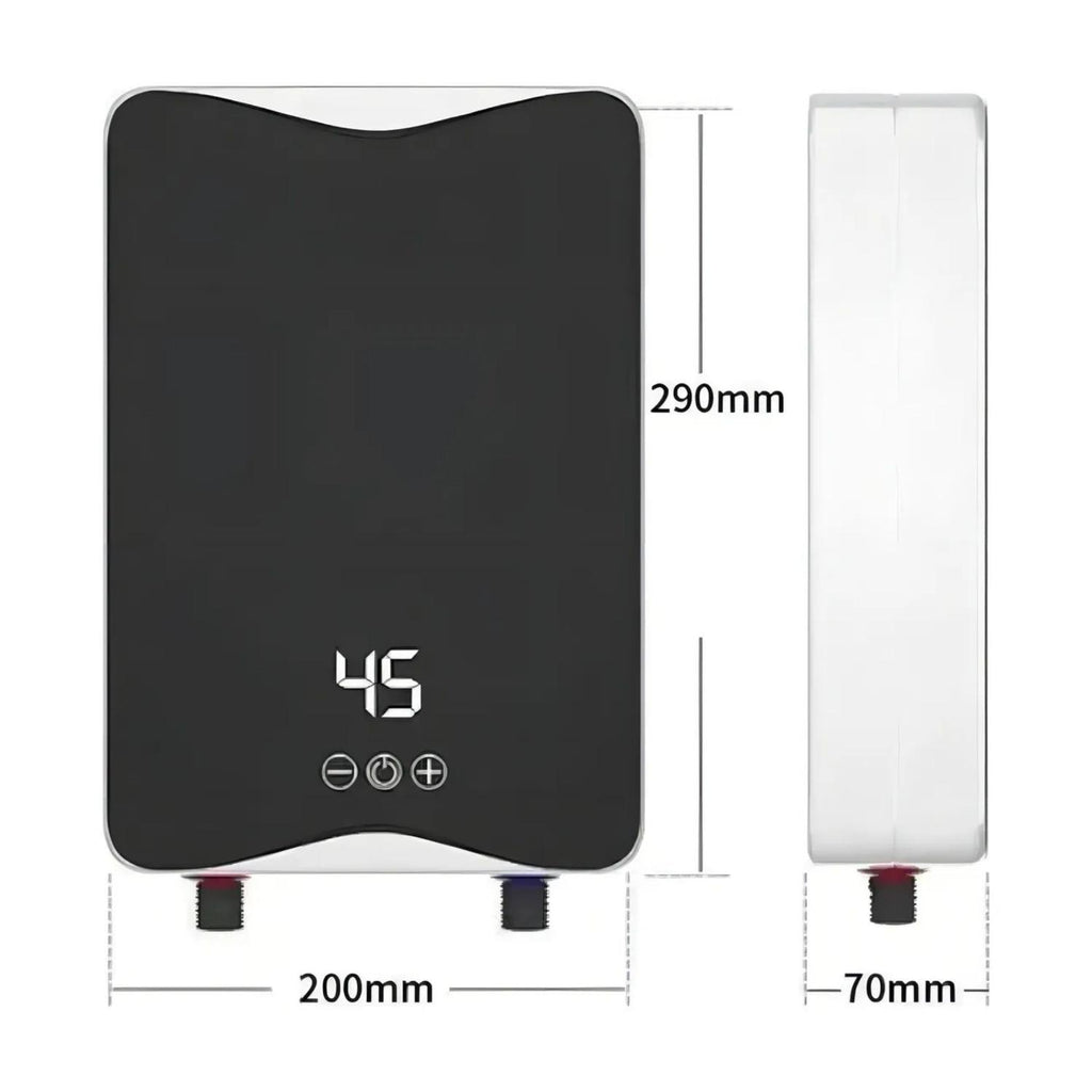 El calentador de agua eléctrico instantáneo para duchas ofrece agua caliente al instante sin necesidad de precalentamiento ni depósito, evitando la pérdida de calor y ahorrando energía. Con una potencia de 5500W y compatibilidad 110V/220V, proporciona agua a temperatura constante, ideal para duchas y uso doméstico, garantizando comodidad y eficiencia en cualquier momento del día. Su diseño compacto ahorra espacio y permite una instalación fácil en baños o cocinas.