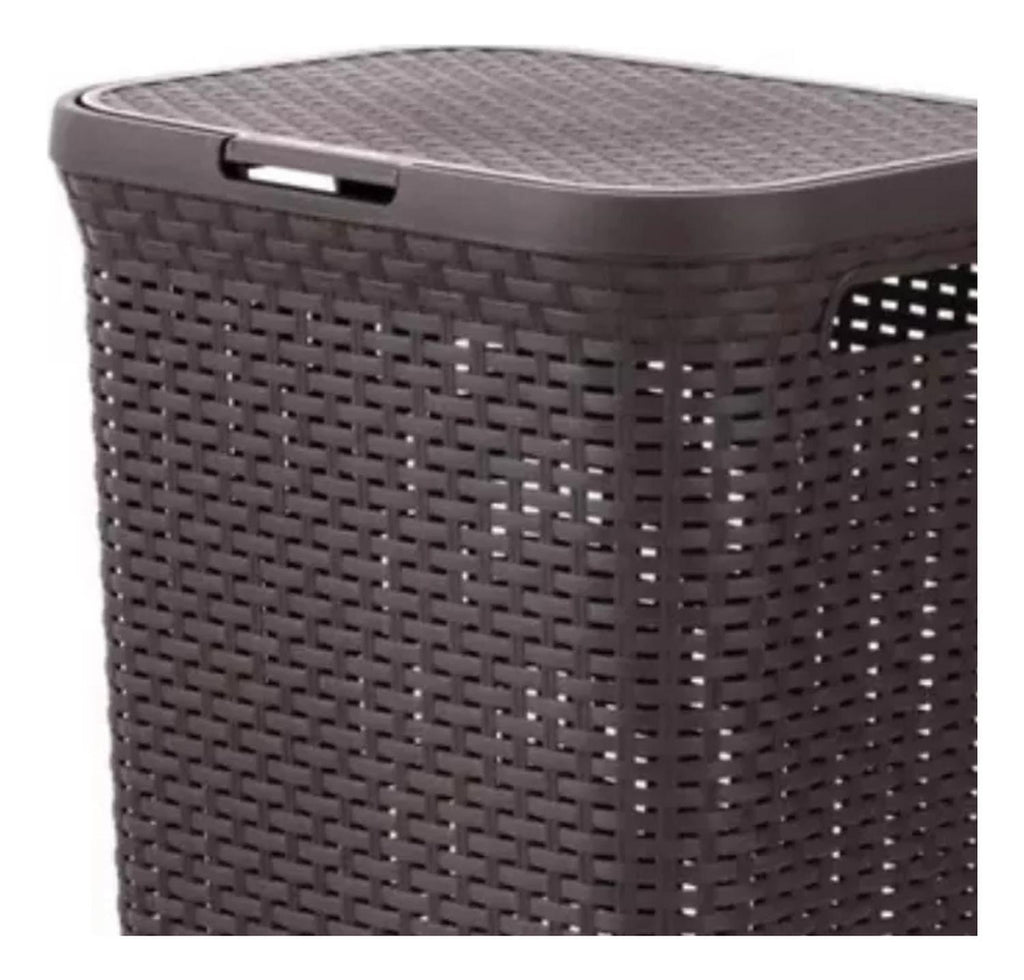 Cesto tipo khipu con apariencia de tejido en ratán, diseño funcional con tapa. Fabricado en plástico en tono Marron, esta canasta tiene capacidad máxima de 60 litros y está pensada para su uso como cesta de ropa.Pesa poco más de un kilo y medio y cuenta con firmes asas para mayor comodidad. Sus dimensiones permiten ubicarlo en diferentes espacios sin ocupar mucho lugar: alto de 59 cm, ancho de 44 cm y largo de 36 cm. Medidas: 59 x 44 x 36 cm. Material: Plástico. Color: Marrón. Incluye Tapa: Si. Producto 100% Recomendado. Garantia de 6 Meses.