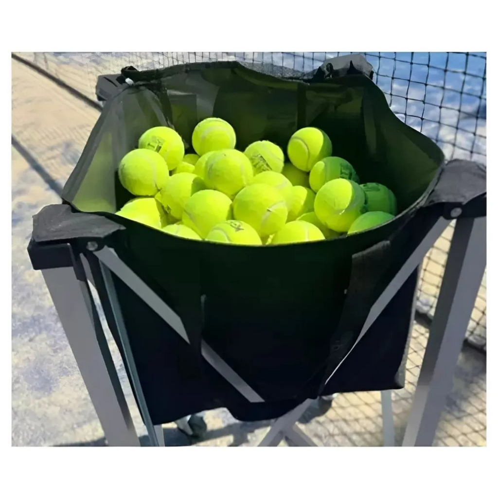 Con capacidad para hasta 150 pelotas y un diseño pensado para facilitar la recolección y almacenamiento, este canasto es una herramienta práctica y eficiente que garantiza durabilidad y comodidad en cada sesión de juego.