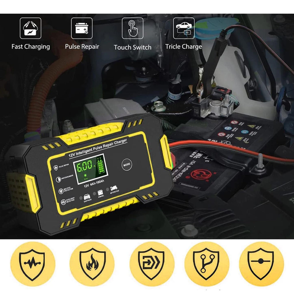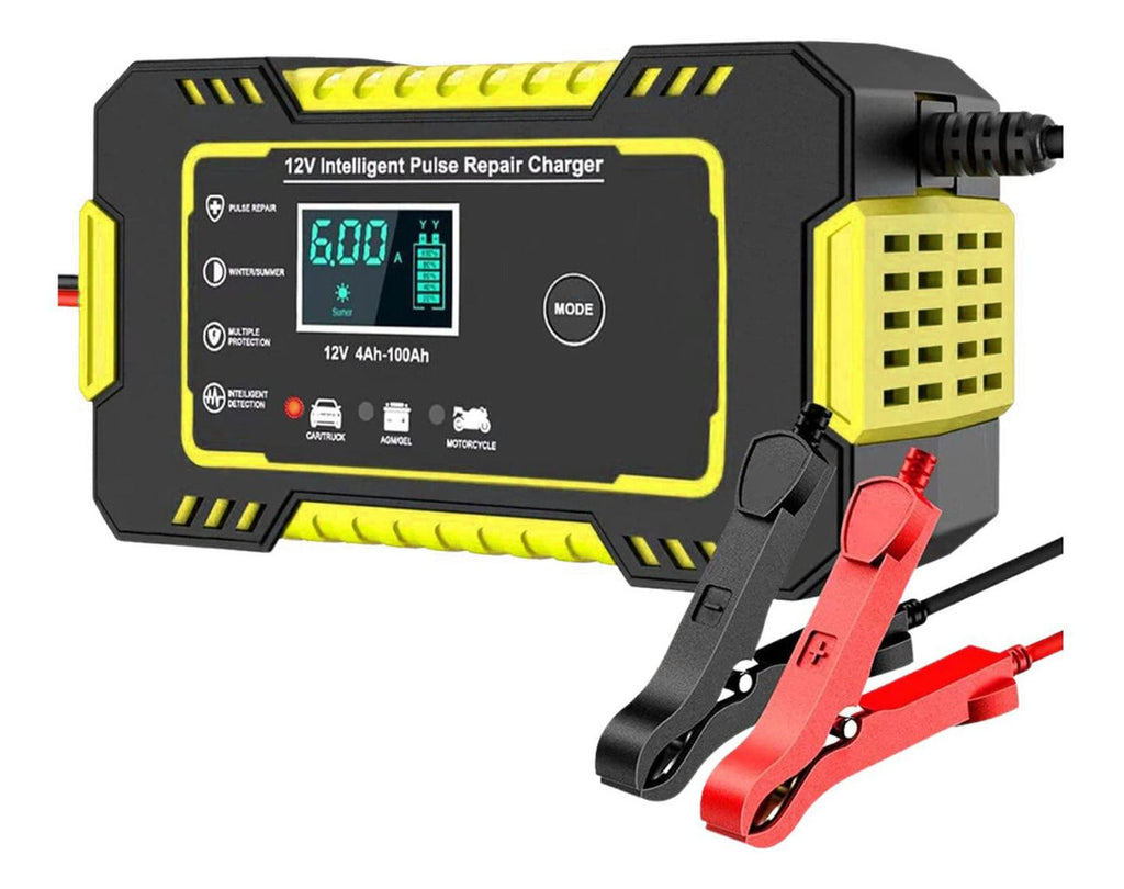 El indicador visual LED muestra claramente el voltaje de la batería, la corriente de carga y la temperatura externa para rastrear el estado de carga. Un clic para seleccionar el modo de carga, ajustar el modo de carga según la situación, incluso el principio puede usarlo de manera. Detecta automáticamente la sulfatación de la batería y la estratificación de la acidificación, se hace carga de la última función de reparación de pulso, restaura la energía perdida de la batería, el motor arranca más fuerte y la duración de la batería es más larga. Nota: No es posible activar o cargar una batería completamente descargada. Tipos de batería aplicables: Batería de plomo-ácido de 12V, batería de arranque-parada y batería de agua seca, ampliamente utilizada en automóviles comunes, motocicletas, yates y vehículos agrícolas. Está prohibido cargar baterías de litio. Protección de polaridad inversa integrada, chispas, sobrecarga, sobrecorriente, interrupción, cortocircuito y protección contra sobrecalentamiento. Evite situaciones peligrosas. Muy adecuado para el cuidado y la carga a largo plazo sin preocupaciones. No se preocupe por los problemas de seguridad. Gran pantalla LCD para carga y estado de la batería; Voltaje y corriente de carga, temperatura interior, porcentaje de carga, modo de verano, modo de invierno, etc. Consejos: La pantalla del cargador de batería del automóvil está cubierta con una película protectora. Después de quitar la película protectora, verá una pantalla nueva. Entrada de CA: 100-240V 50/60HZ. Voltaje de salida: 12V. Corriente de salida: 6A 12V. Potencia de entrada con carga: Max.130W. Refrigeración: ventilador. Tamaño: 17x9.8x5.8 cm. Material: Plástico y metal. Color: Amarillo. Producto 100% recomendado. Garantia Legal de 6 meses.