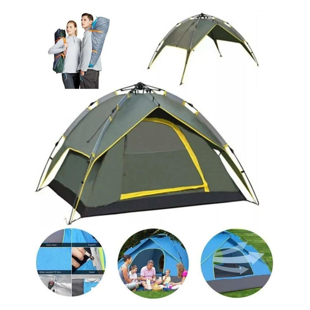 Tienda de campaña automática de doble capa, ideal para actividades al aire libre como camping, senderismo o excursiones. Su diseño rápido y portátil permite que se despliegue al instante, ofreciendo comodidad y protección para 4 a 5 personas. Equipada con doble puerta y doble ventana, garantiza ventilación y fácil acceso, además de incluir mosquiteros integrados para mayor confort.