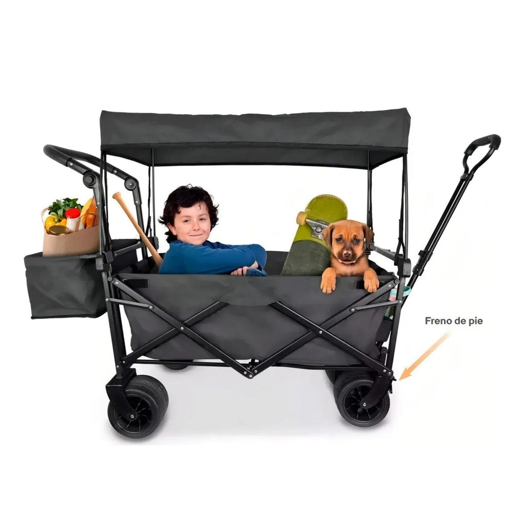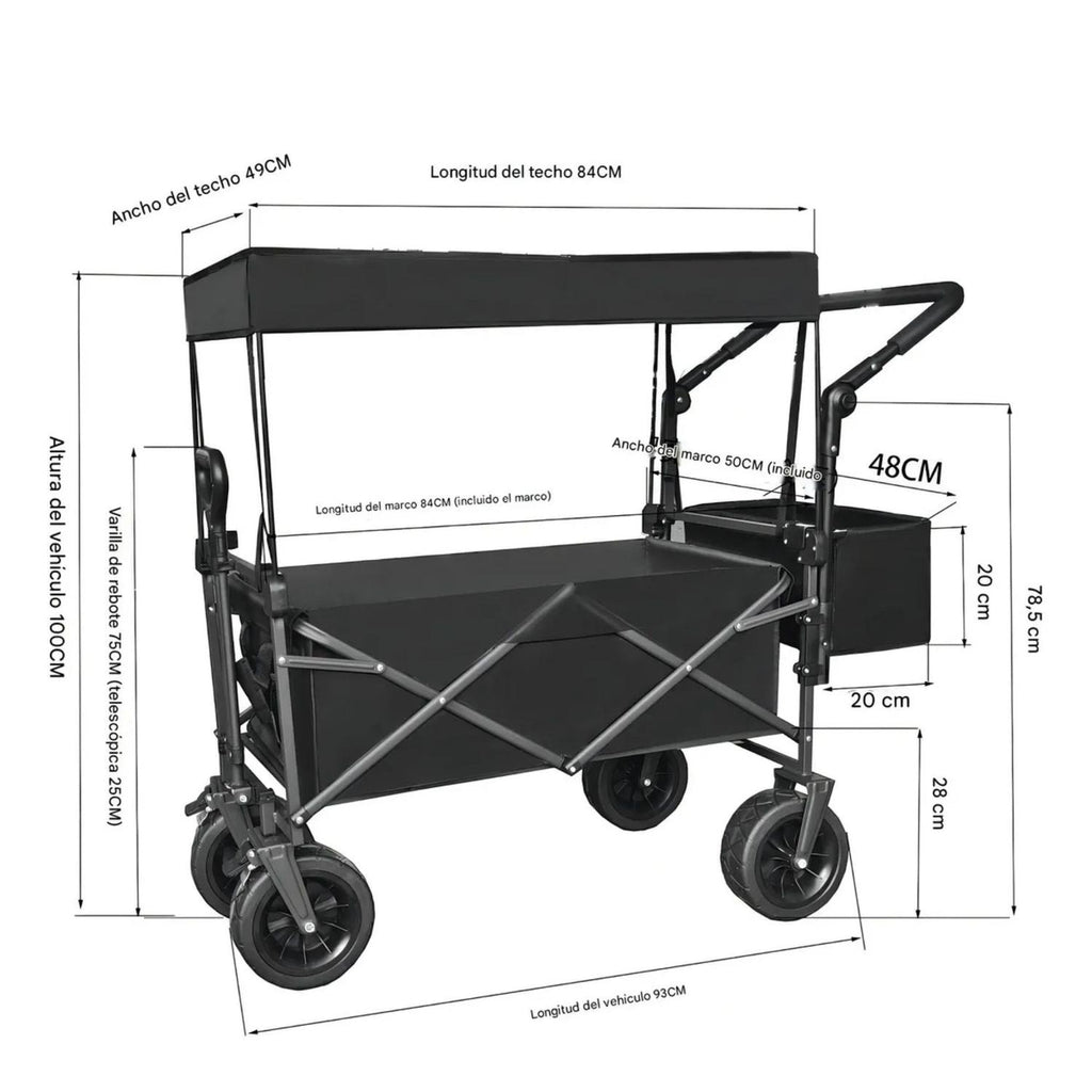 Carrito Carriola Plegable Portátil Exteriores Toldo Llantas 360º Negro
