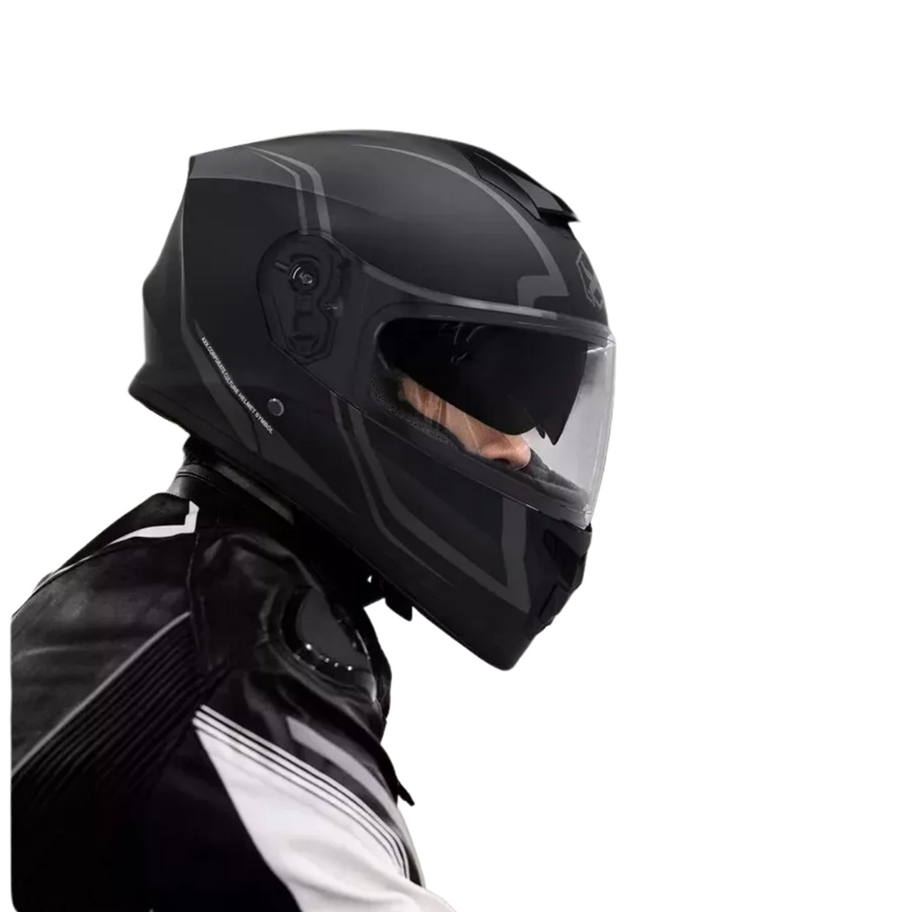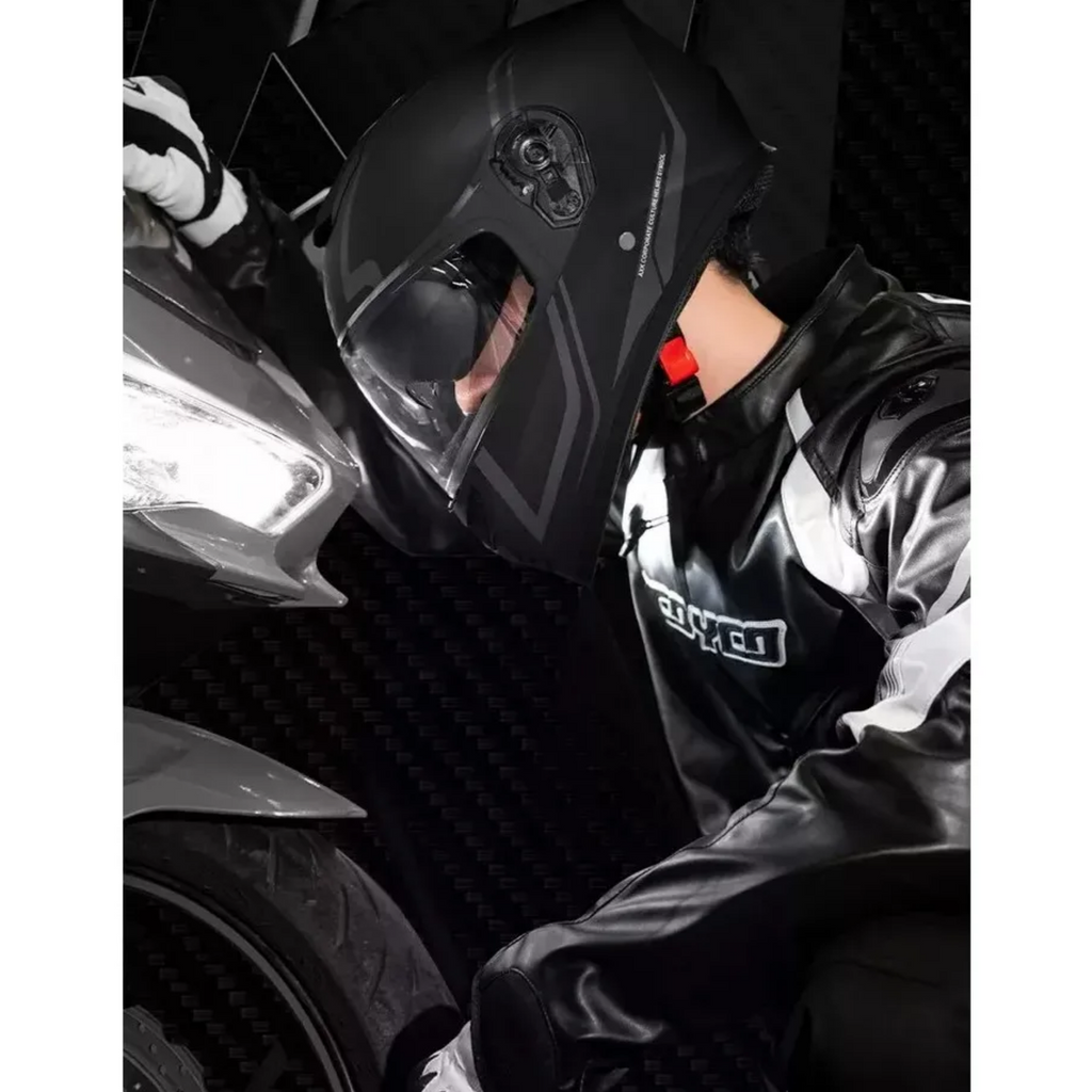 Casco modular integral abatible con visera doble, diseñado para ofrecer máxima protección y comodidad en cada viaje. Fabricado con carcasa de compuesto ABS ligero, que equilibra resistencia, estabilidad y bajo peso. Cuenta con certificación de seguridad DOT y una capa amortiguadora EPS que reduce eficazmente el impacto, garantizando seguridad sin sacrificar ligereza. Su sistema de ventilación ajustable permite mantener la frescura en climas cálidos y bloquear la brisa en climas fríos, mientras que el diseño aerodinámico ayuda a minimizar el ruido durante la conducción.