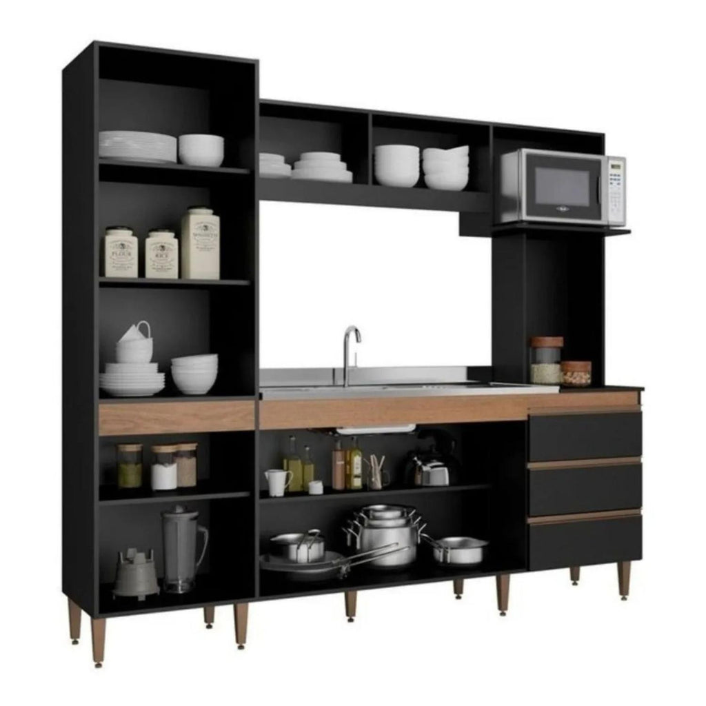 Cocina Vitoria 3 Cajones 7 Puertas 203x215 CM Negro