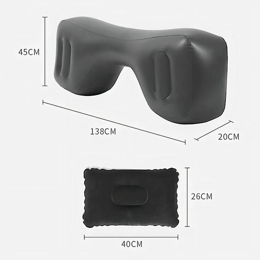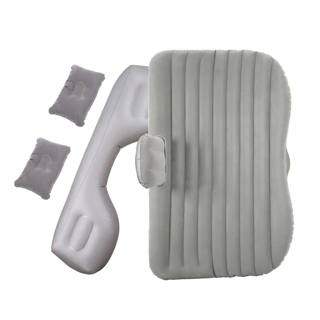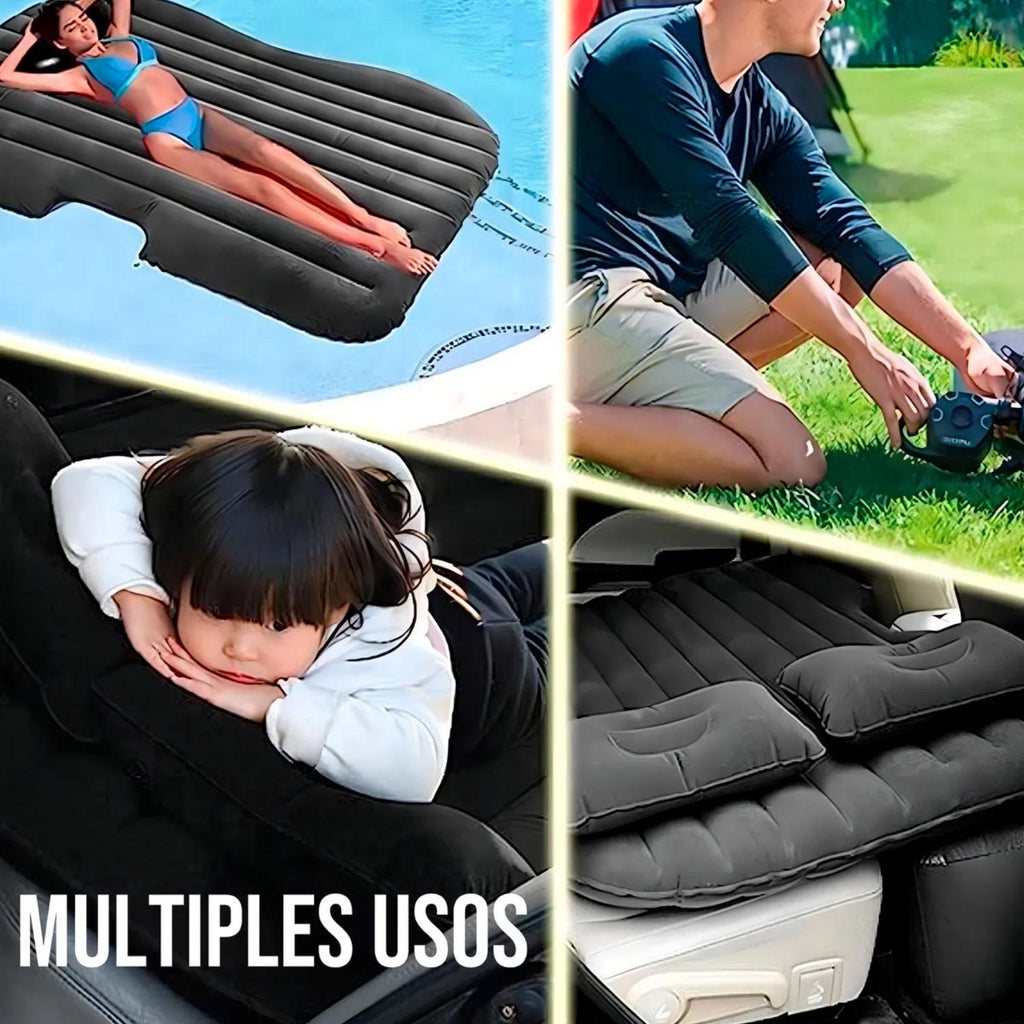 Este colchón inflable para vehículo es la opción ideal para un descanso repentino o un viaje al aire libre. Se coloca en los asientos traseros y convierte el espacio en una cama cómoda para una persona, incluyendo dos almohadas para mayor confort. Las boquillas de aire con doble sellado ayudan a mantener el aire por más tiempo, mientras que el material flocado es suave y agradable al tacto. Incluye un soporte inflable que se coloca entre los asientos para brindar mayor estabilidad.