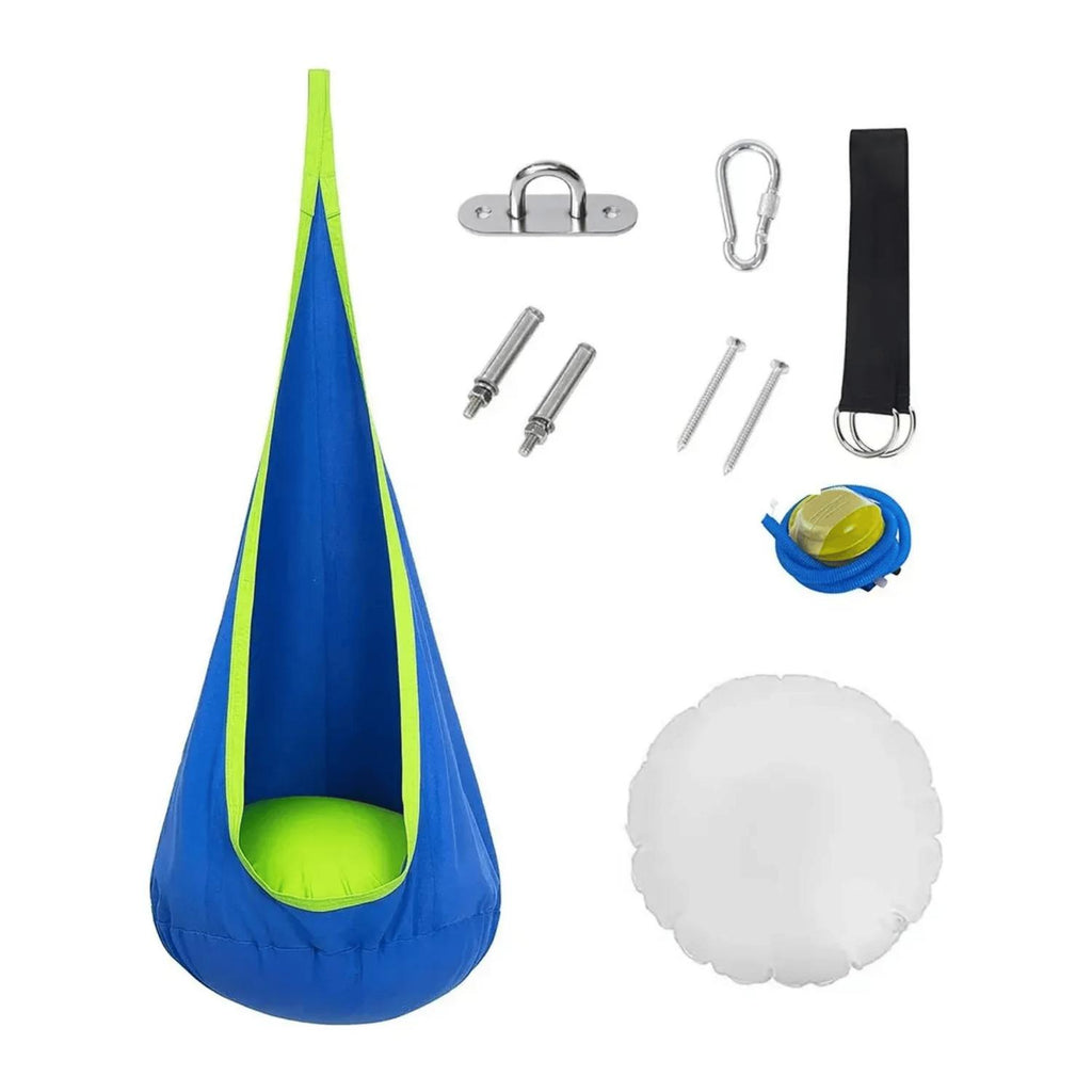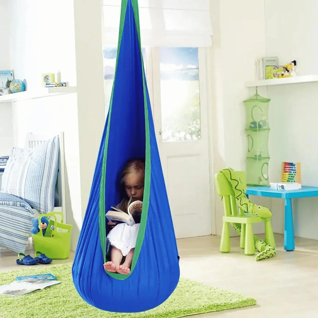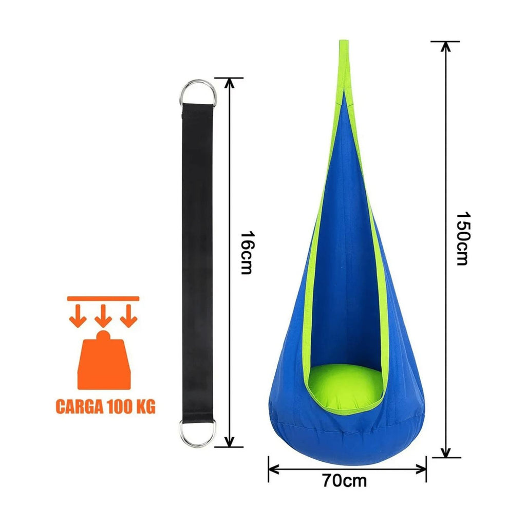 Dale a los más pequeños un espacio propio lleno de diversión, calma y confort con este asiento oscilante tipo cápsula. Diseñado especialmente para niños de 3 a 9 años, este columpio sensorial no solo estimula el equilibrio y el desarrollo físico, sino que también funciona como un refugio seguro y tranquilo. Perfecto para tomar una siesta, leer un libro o simplemente relajarse, puede instalarse en interiores o exteriores: dormitorio, sala, balcón, patio o incluso en un árbol.