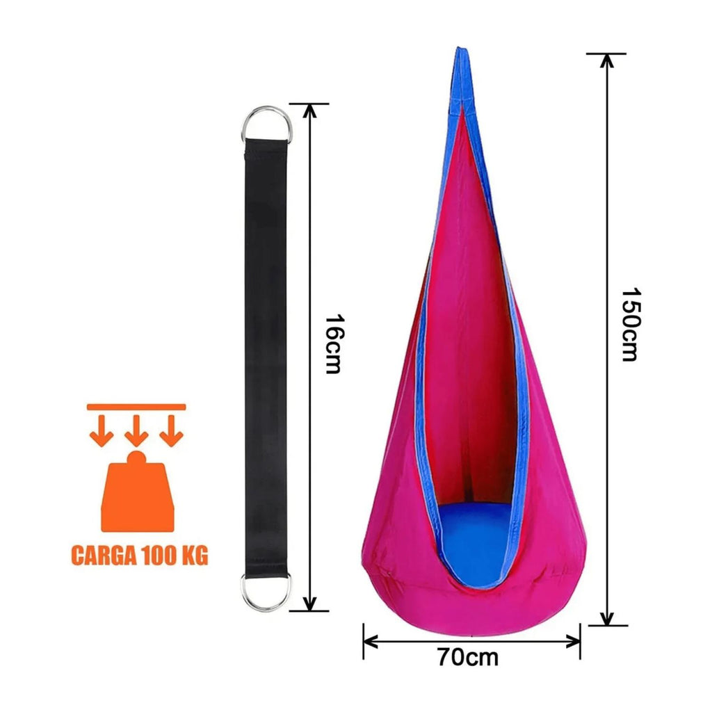 Dale a los más pequeños un espacio propio lleno de diversión, calma y confort con este asiento oscilante tipo cápsula. Diseñado especialmente para niños de 3 a 9 años, este columpio sensorial no solo estimula el equilibrio y el desarrollo físico, sino que también funciona como un refugio seguro y tranquilo. Perfecto para tomar una siesta, leer un libro o simplemente relajarse, puede instalarse en interiores o exteriores: dormitorio, sala, balcón, patio o incluso en un árbol.