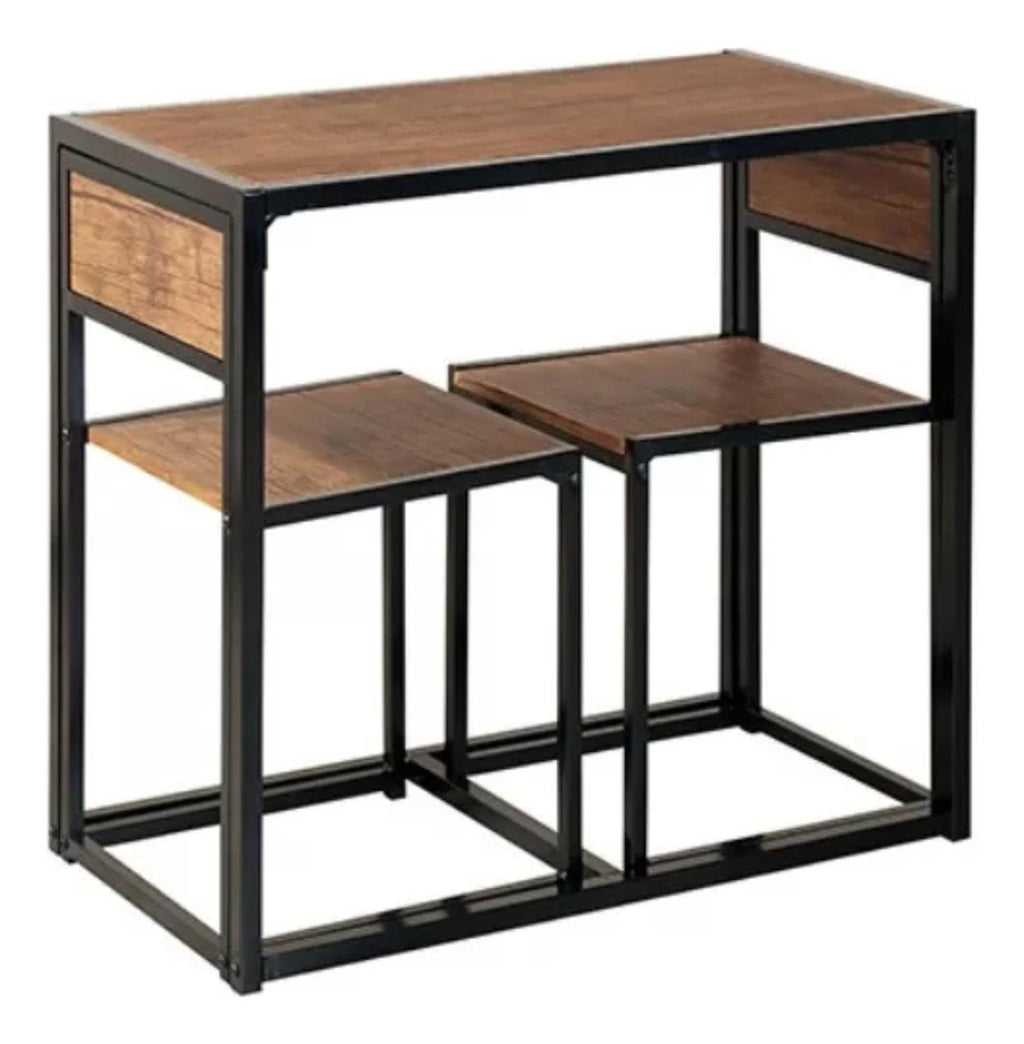 Este conjunto, diseñado para quienes aprecian la vanguardia y buscan optimizar su espacio, cuenta con una estructura robusta de metal que garantiza durabilidad y estabilidad. La cubierta de madera de la mesa y las sillas añade un toque de calidez y elegancia natural a tu hogar. Con medidas ideales, la mesa de 90 cm de largo y 76 cm de alto se complementa con dos sillas de 40 cm de profundidad y 73 cm de altura, creando un ambiente acogedor sin sacrificar espacio. El modelo Chelsea, que requiere ensamblado, es la elección perfecta para quienes desean un espacio sofisticado y contemporáneo. Su forma rectangular y el ancho de 45 cm de la mesa se adaptan a cualquier rincón, ofreciendo una experiencia de comodidad y lujo en tus comidas diarias. Medidas: -Altura de la mesa: 76 cm. -Ancho de la mesa: 45 cm. -Largo máximo de la mesa: 90 cm. -Altura de las sillas: 70 cm. -Ancho de las sillas: 40 cm. -Profundidad de las sillas: 40 cm. -Incluye tapizado: No. Materiales: Madera. Producto 100% Recomendado. Garantia de 6 Meses.
