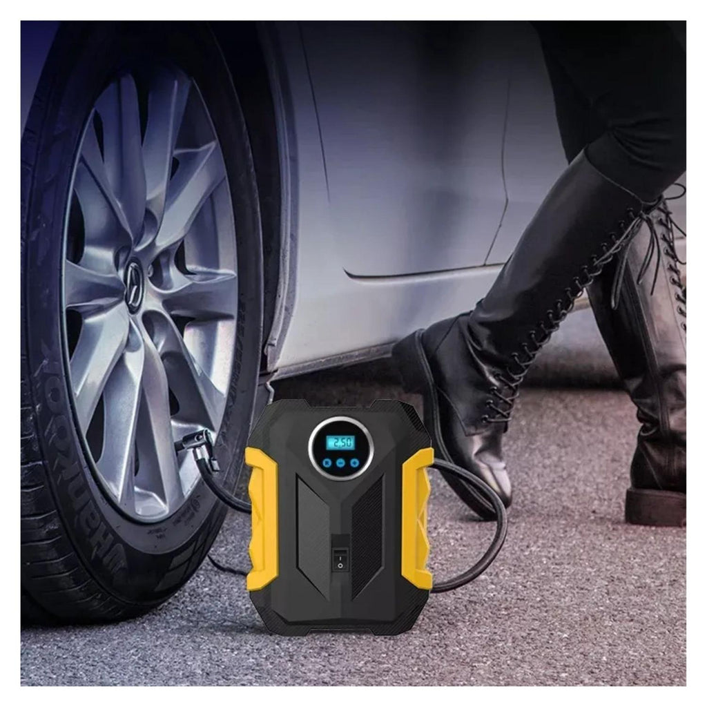 Compresor de aire portátil digital Carsun, modelo C1399, ideal para autos y camionetas que funcionen a 12 Volt, cuenta con presión máxima de 150 PSI y luz LED de emergencia