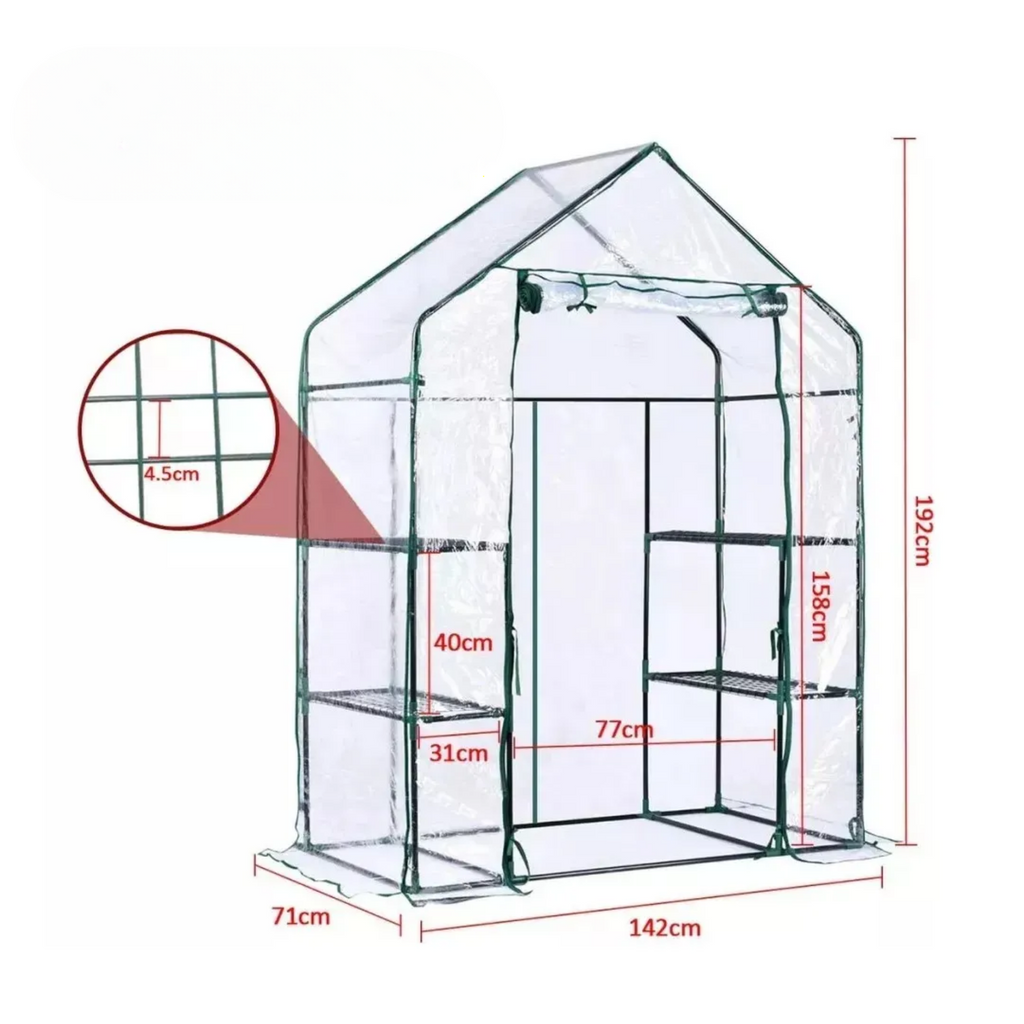 Además, esta cubierta es fácil de montar sin necesidad de herramientas y se pliega para un almacenamiento sencillo cuando no está en uso. Su tamaño compacto y funcionalidad la hacen ideal para patios traseros, terrazas o espacios pequeños, extendiendo la temporada de cultivo y manteniendo tus plantas protegidas y visibles desde el exterior.