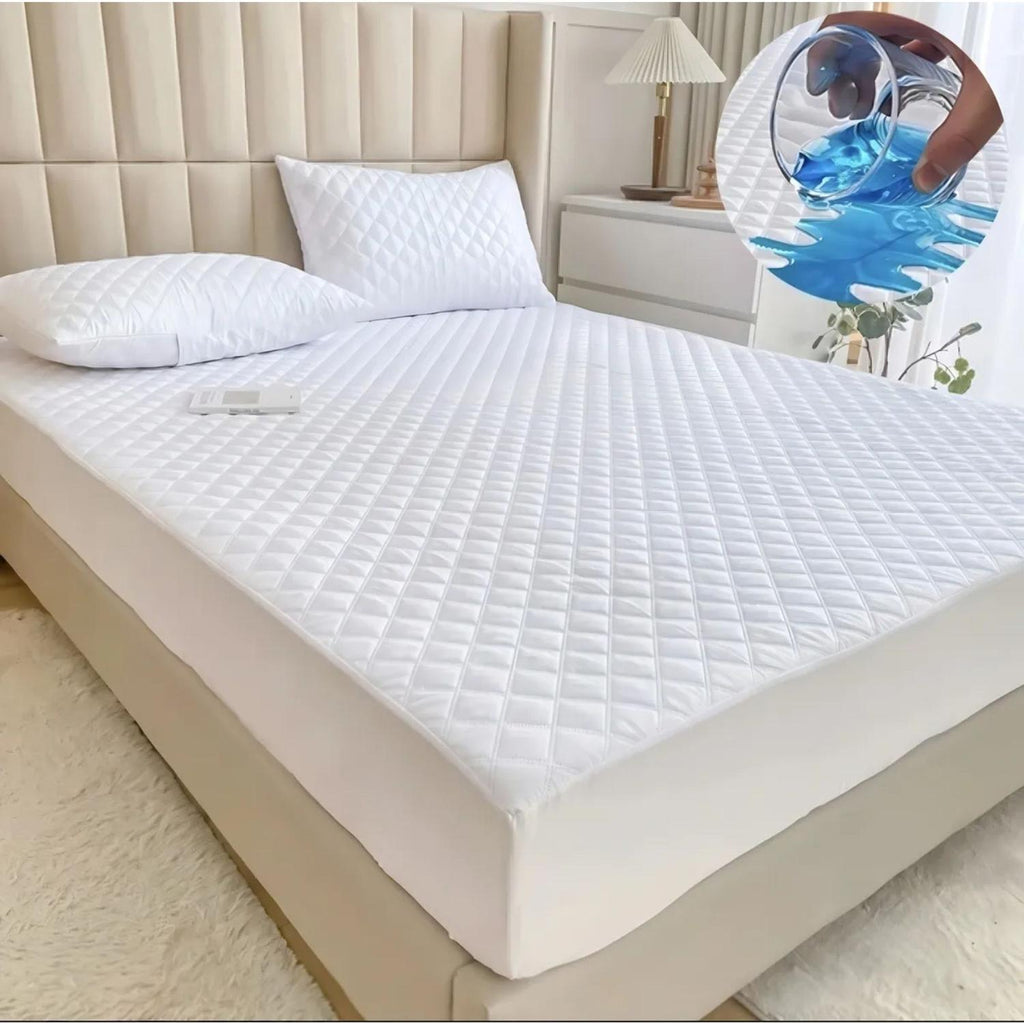 Cubre colchón Acolchado Impermeable Más 2 Fundas Almohadas 2 Plazas Blanco