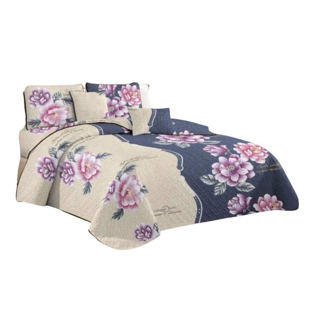 Cubrecama Cobertor Delgado 2 Plazas Flores Gris