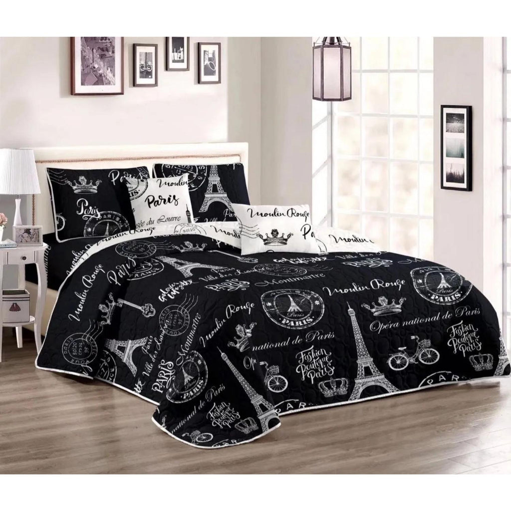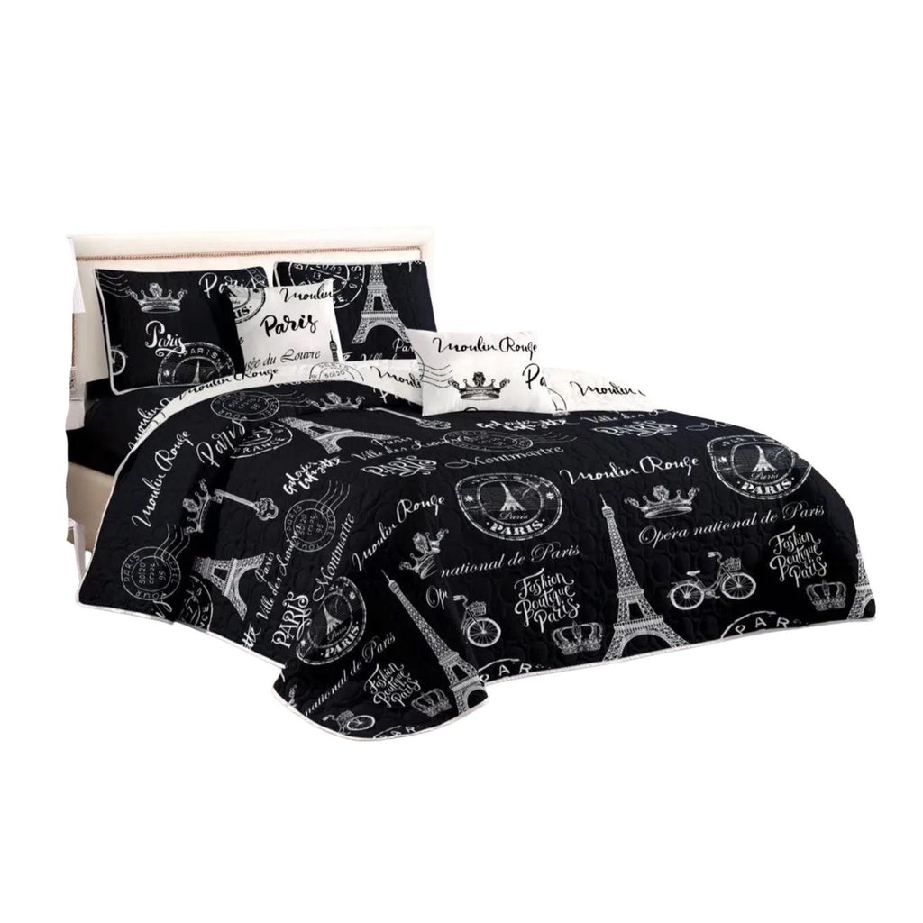 Cubrecama Verano Delgado 2 Plazas Paris Negro