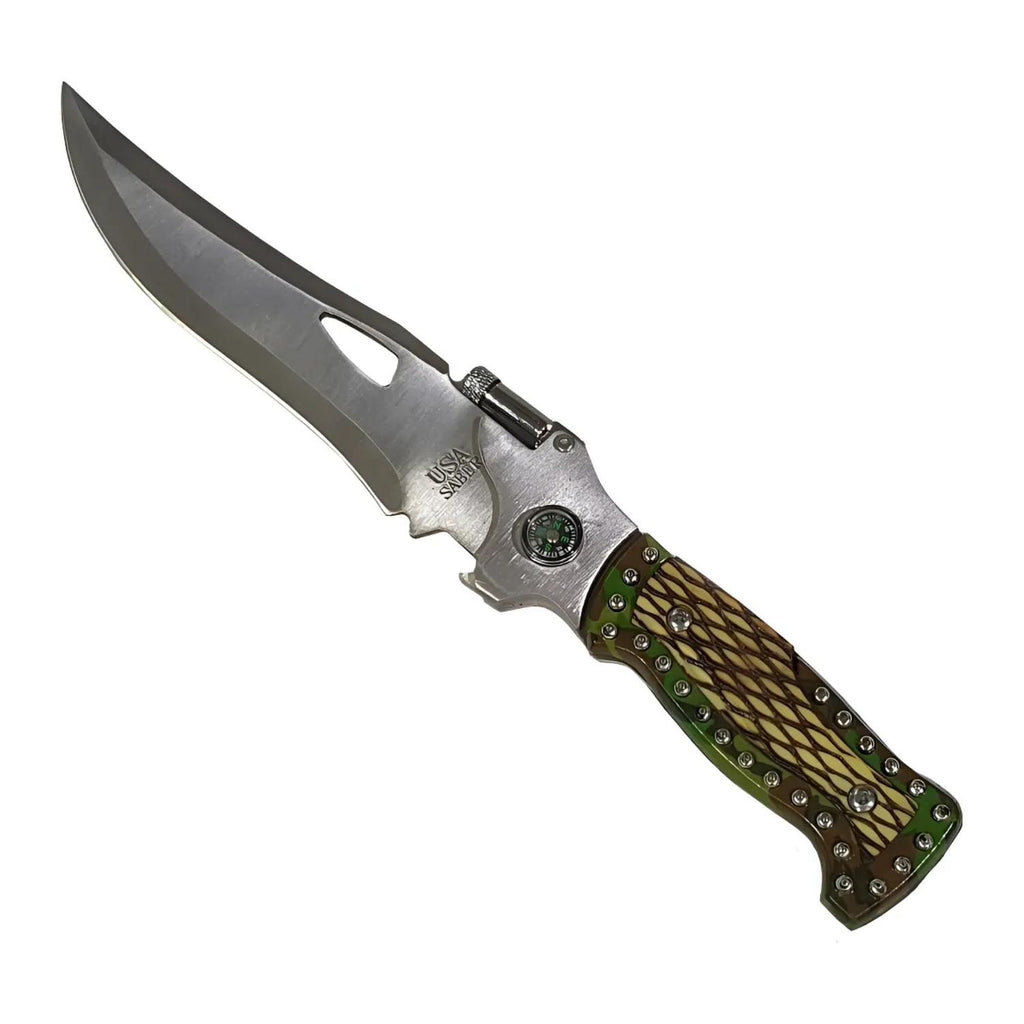 El mango está recubierto con pintura de polímero engomado, lo que garantiza un agarre firme incluso en condiciones húmedas. Incluye un agujero para cordón de seguridad y una funda para cinturón, facilitando su transporte y acceso rápido cuando lo necesites.