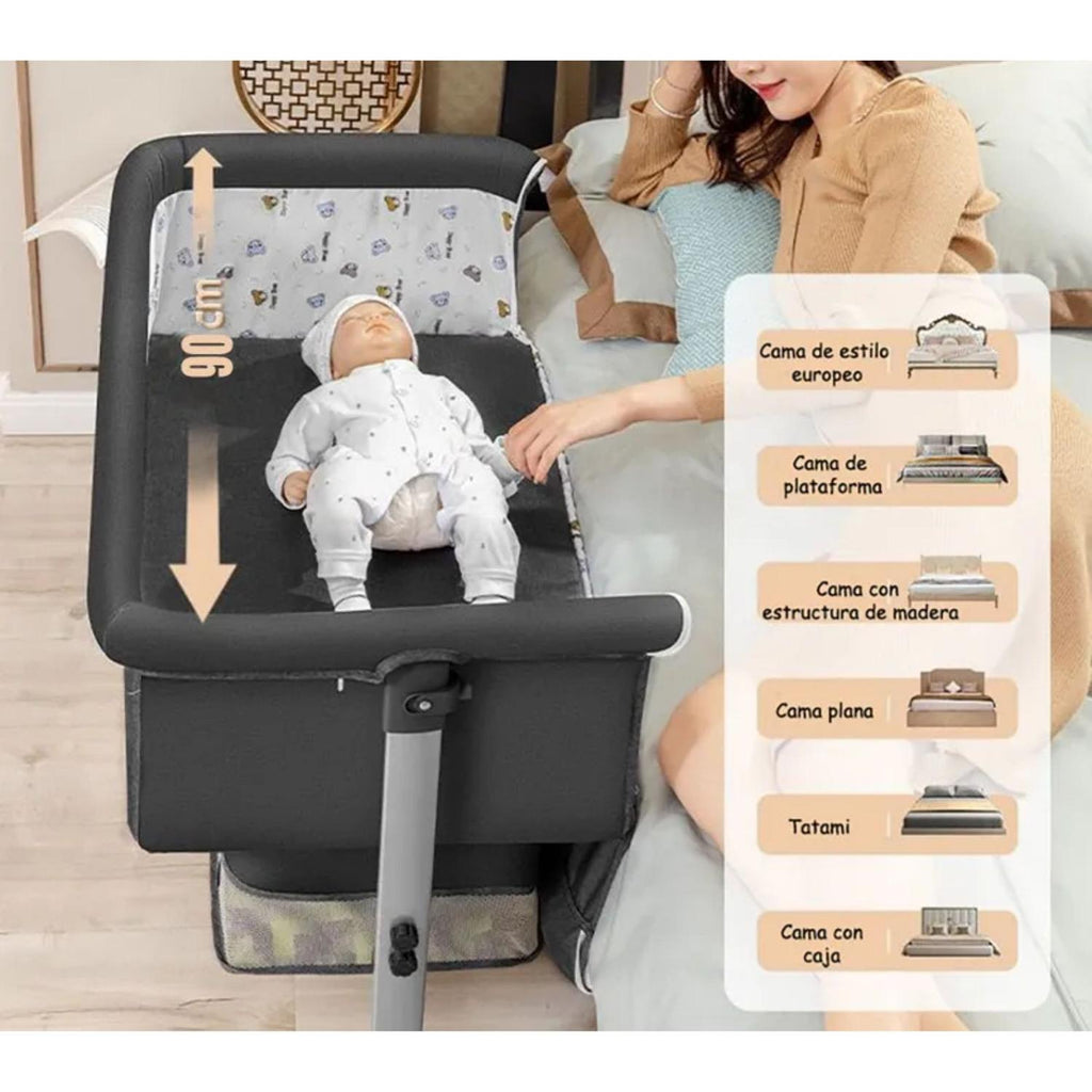 Esta cuna colecho multifuncional y portátil está diseñada para ofrecer un entorno seguro y cómodo para el descanso del bebé desde recién nacido hasta los 24 meses. Fabricada con materiales suaves y transpirables, cuenta con laterales de malla que permiten la vigilancia parental y evitan riesgos de pellizcos. Su estructura incluye un mosquitero protector que mantiene al bebé libre de insectos, además de un diseño transparente para facilitar la observación mientras duerme. Ideal para uso en casa o durante viajes, la cuna se pliega fácilmente y es práctica para transportar.