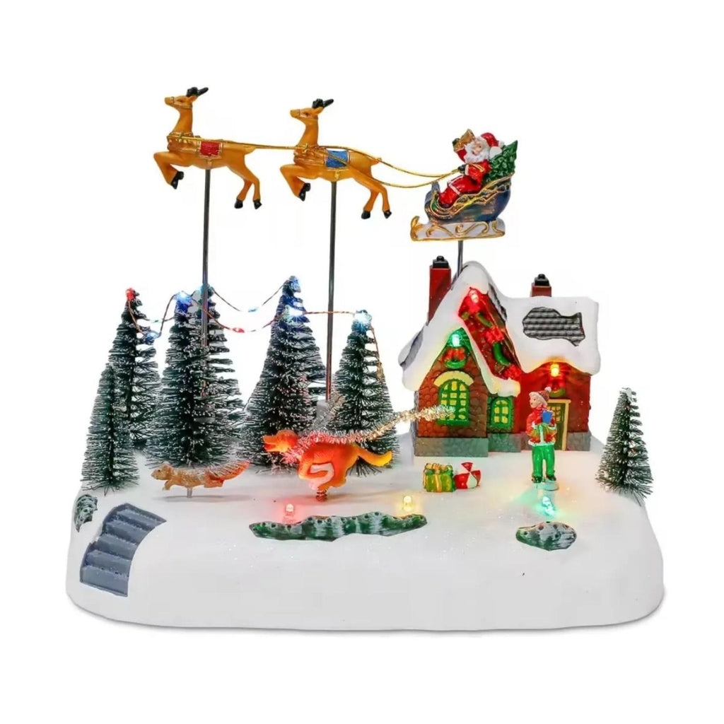 Ideal para colocar sobre mesas, estantes o vitrinas, esta decoración transforma tu hogar en un escenario navideño lleno de encanto y diversión. Perfecta para quienes buscan una experiencia navideña interactiva y memorable.